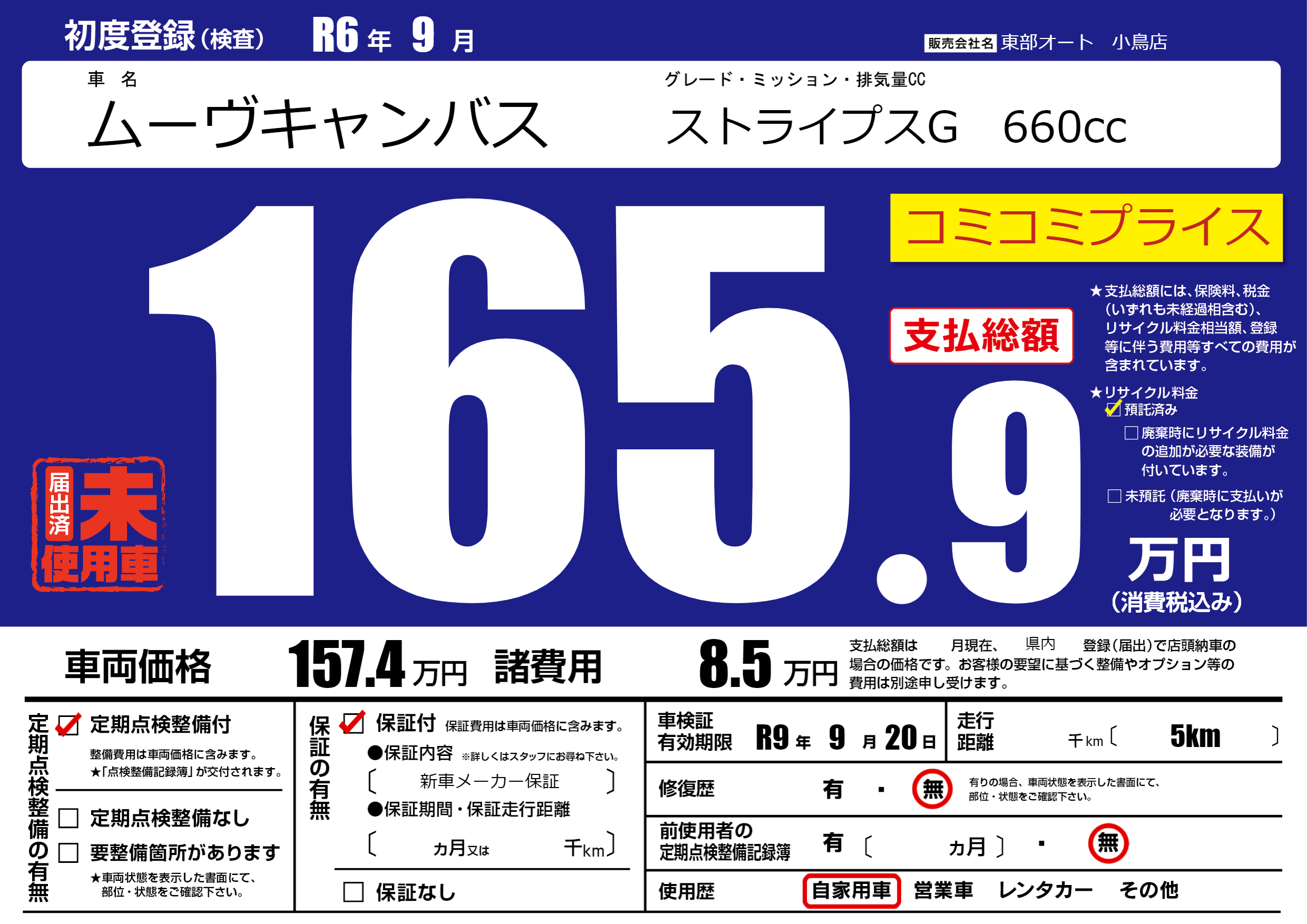 | 走行キロ | - | 初年度登録 | R6年9月 |