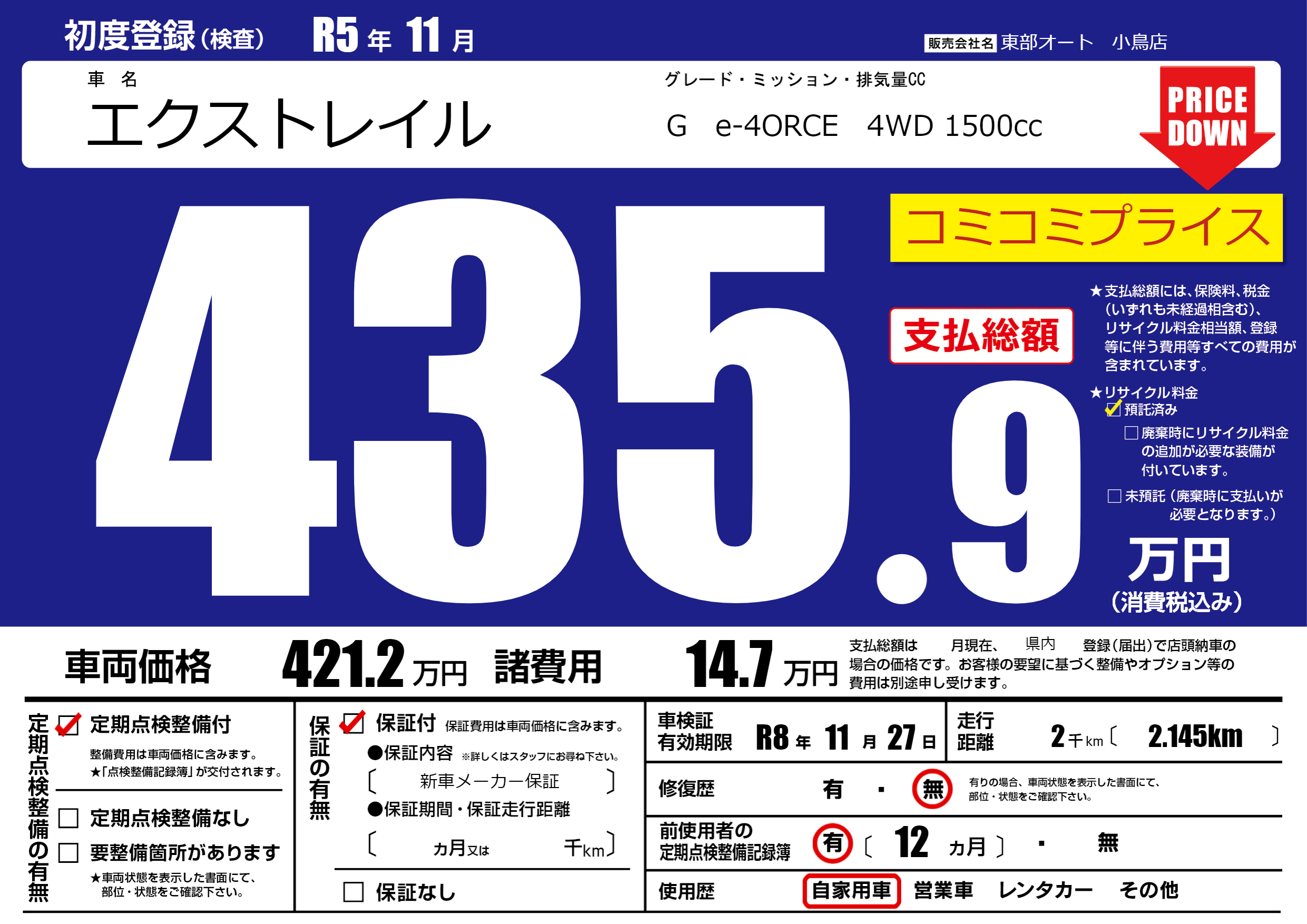 | 定期点検整備 | 定期点検整備あり | ||