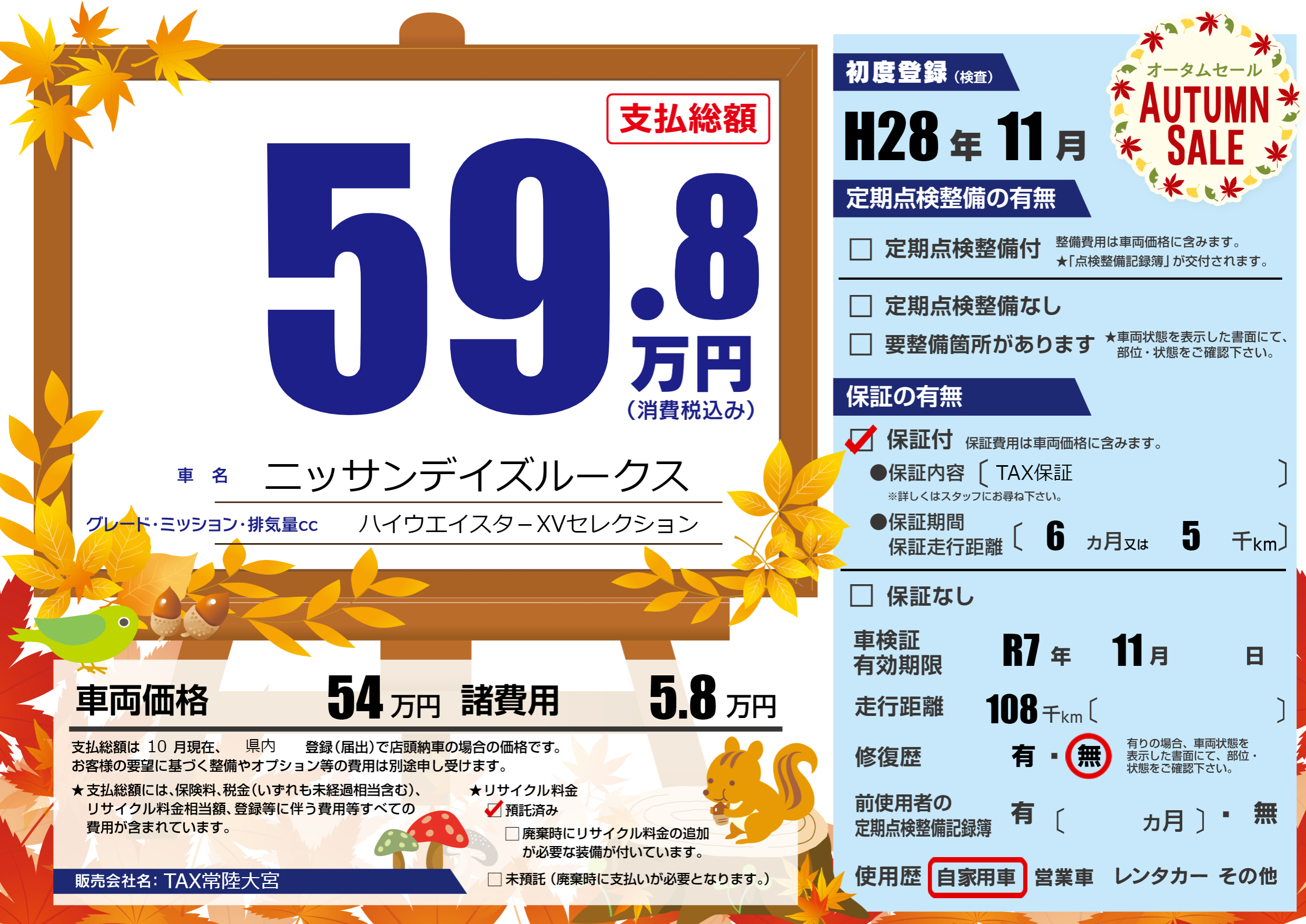 | 車名 | ニッサンデイズルークス | グレード ミッション 排気量 |