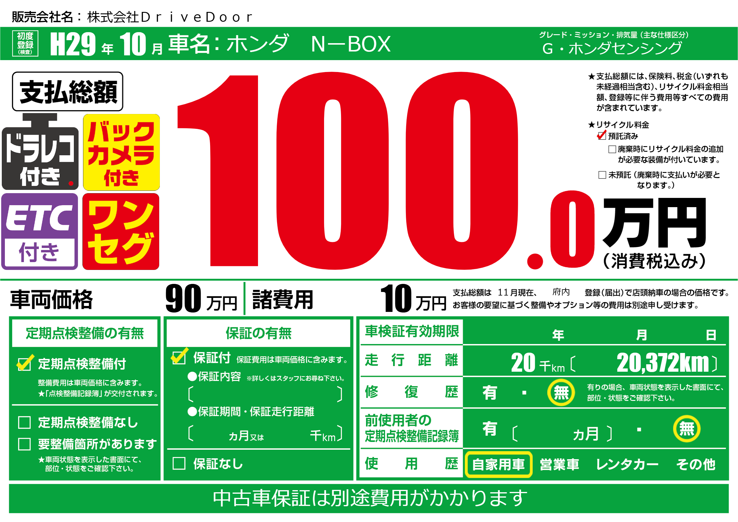 | 走行キロ | 2万km | 初年度登録 | H29年10月 |