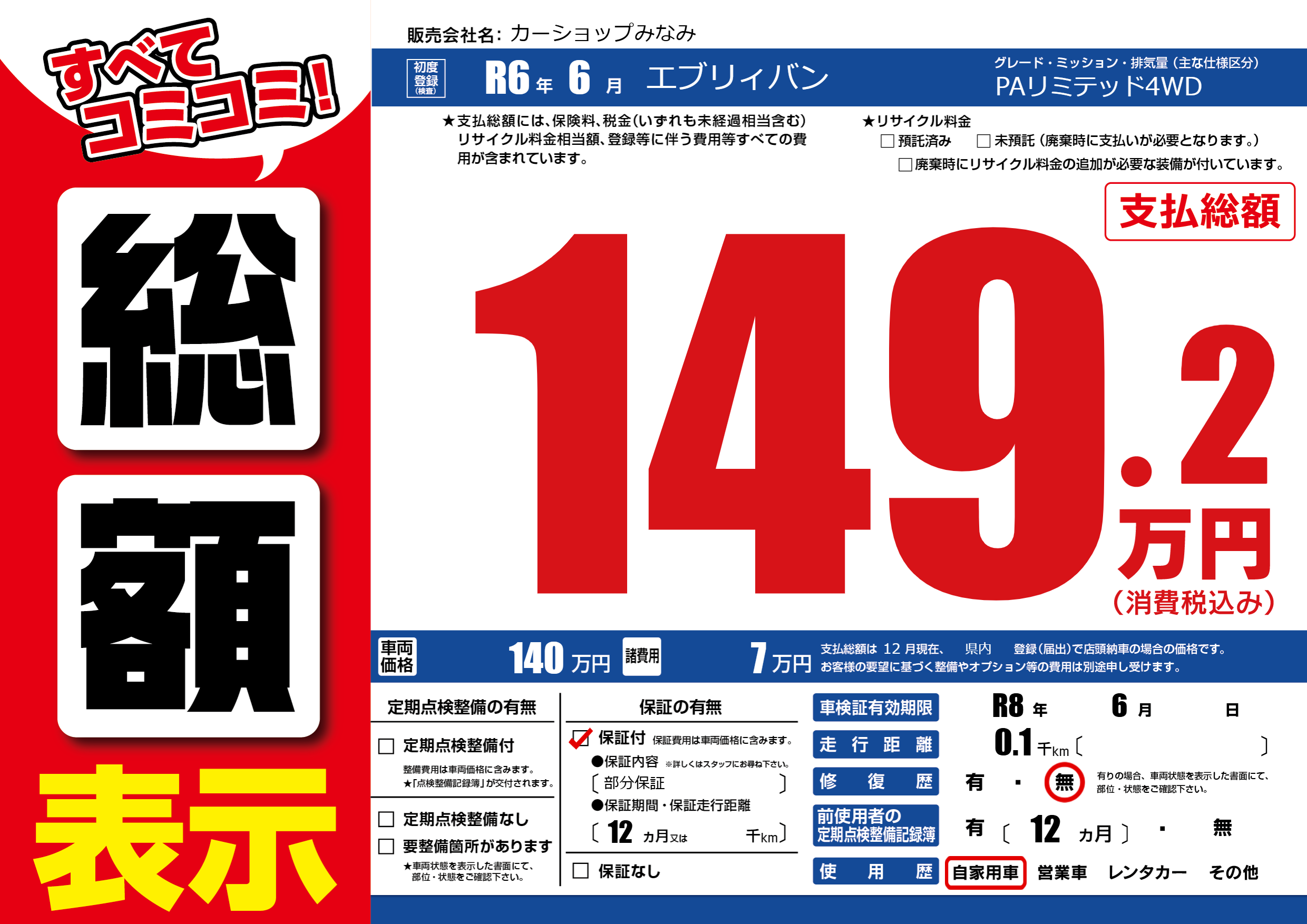| 車名 | エブリィバン | グレード ミッション 排気量 |