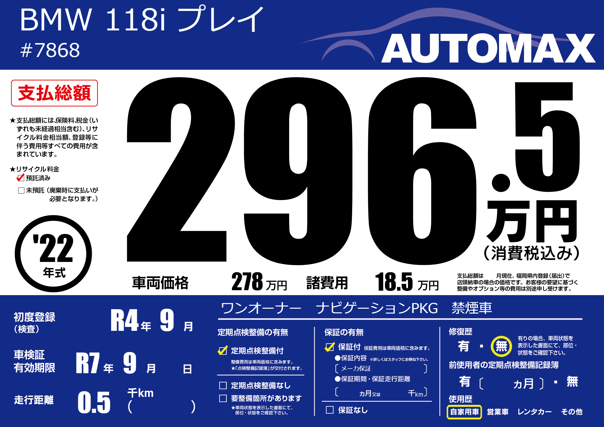 | 車検制限 | R7年 9月 - 日 | ||