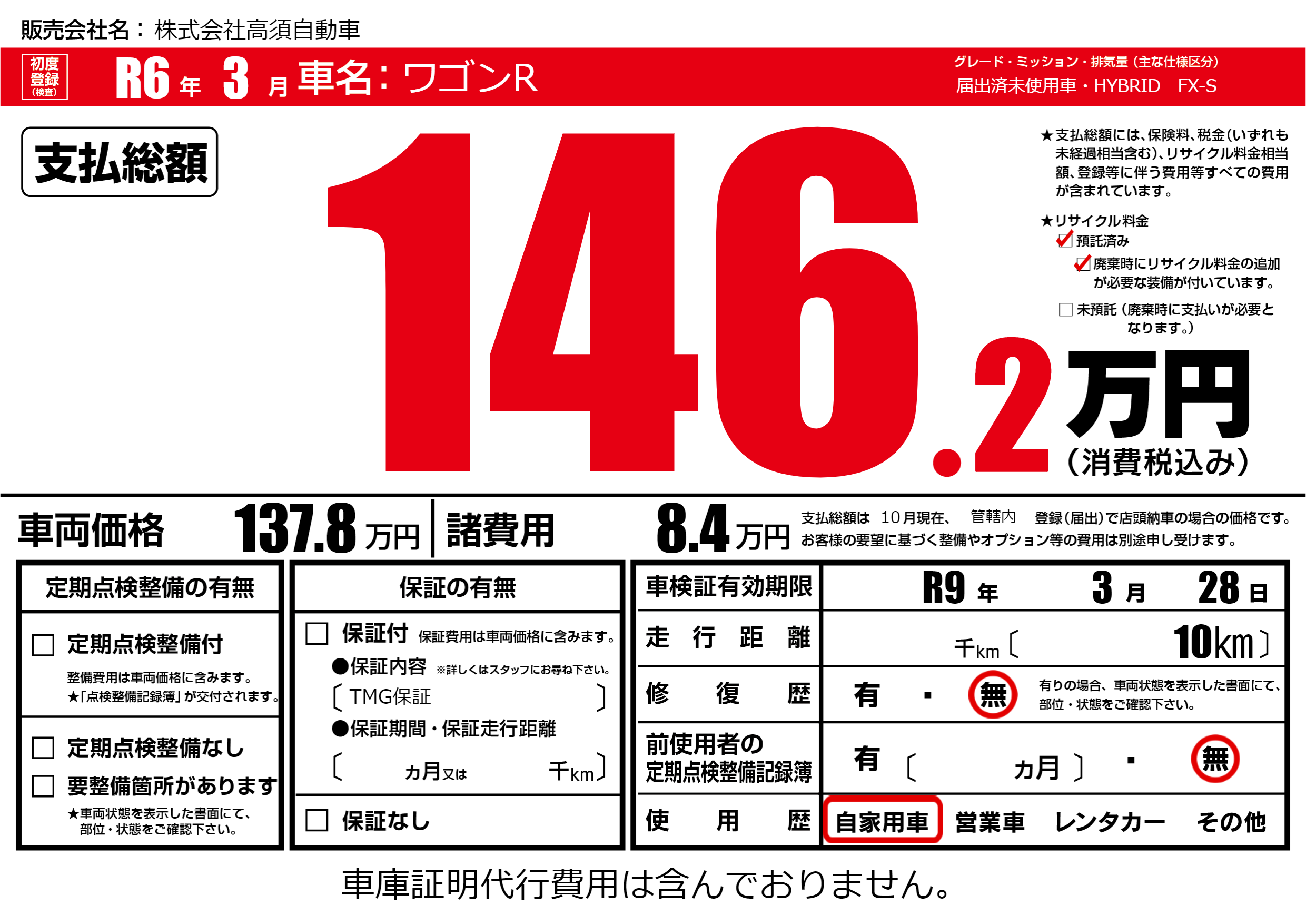 保証なし 保証内容(TMG保証) ---ヶ月または()千kmまで |