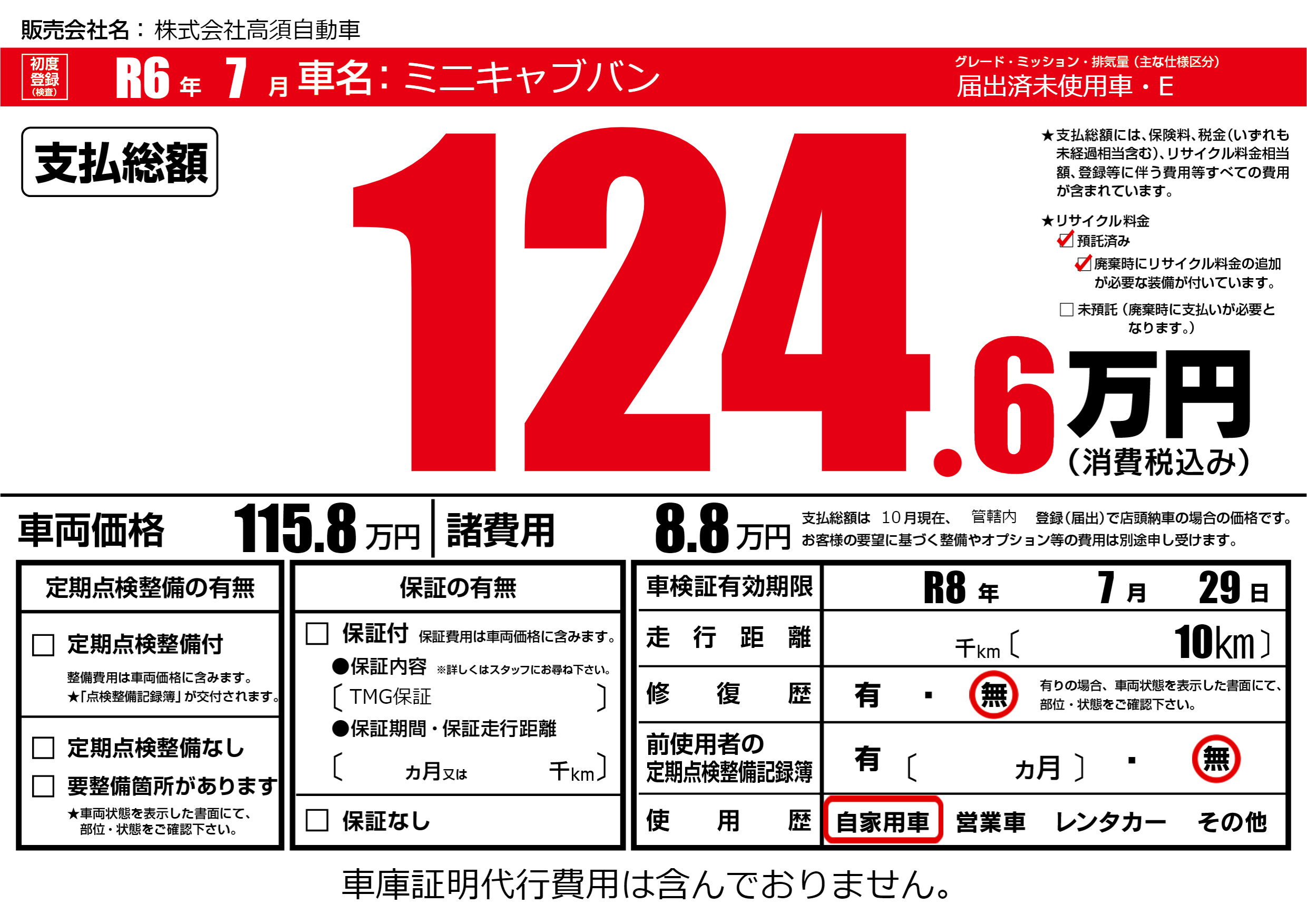 保証なし 保証内容(TMG保証) ---ヶ月または()千kmまで |