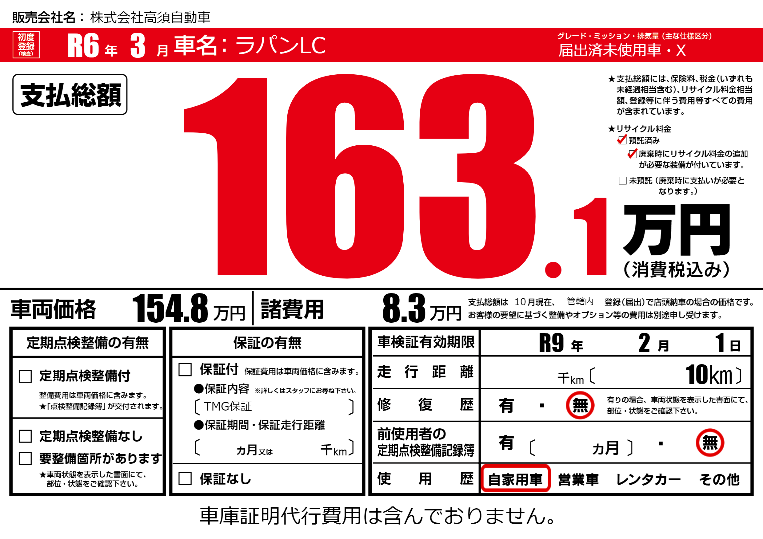 なし | 車検制限 | R9年2月1月 |