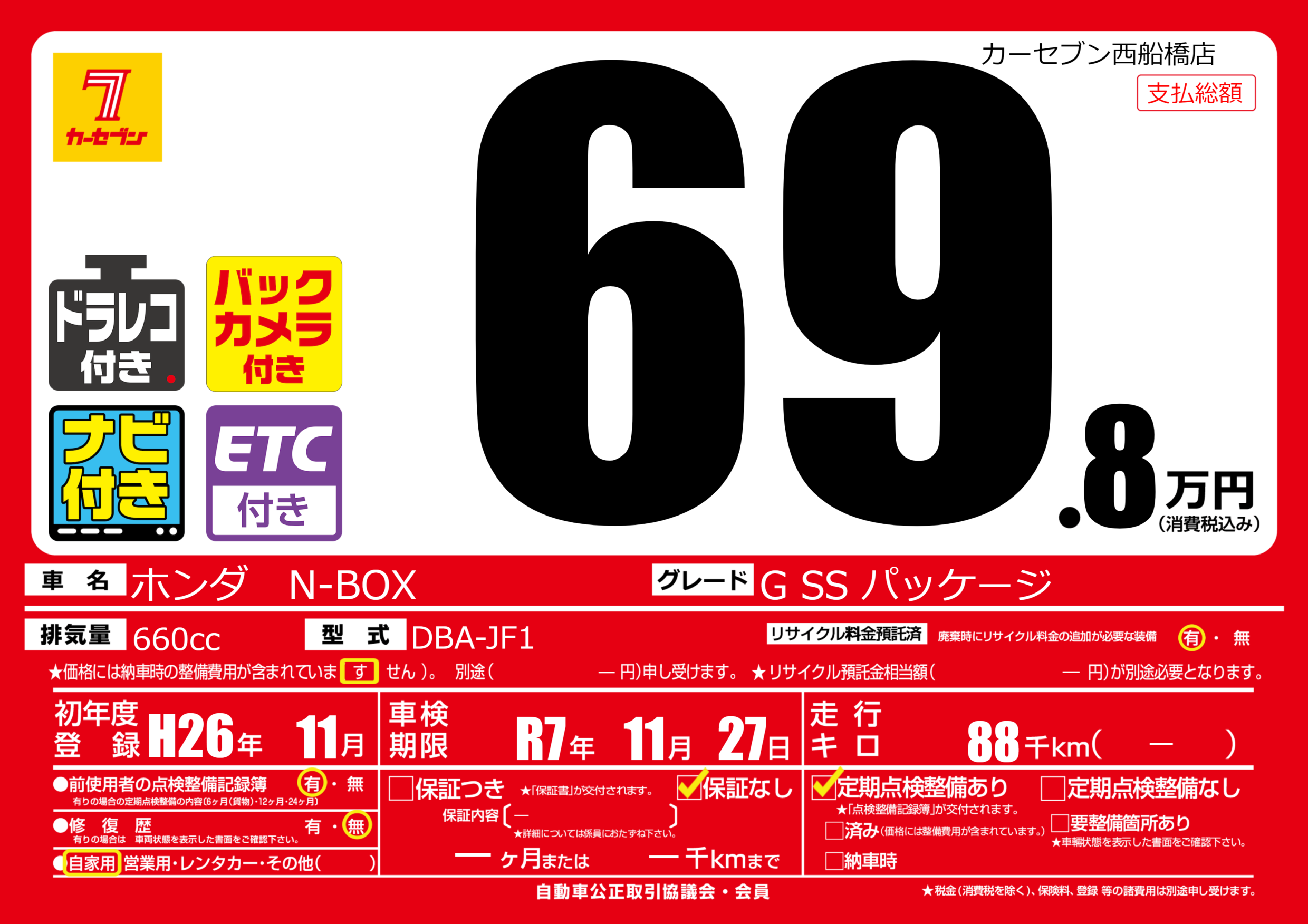 | 走行キロ | 8.8万km | 初年度登録 | H26年11月 |