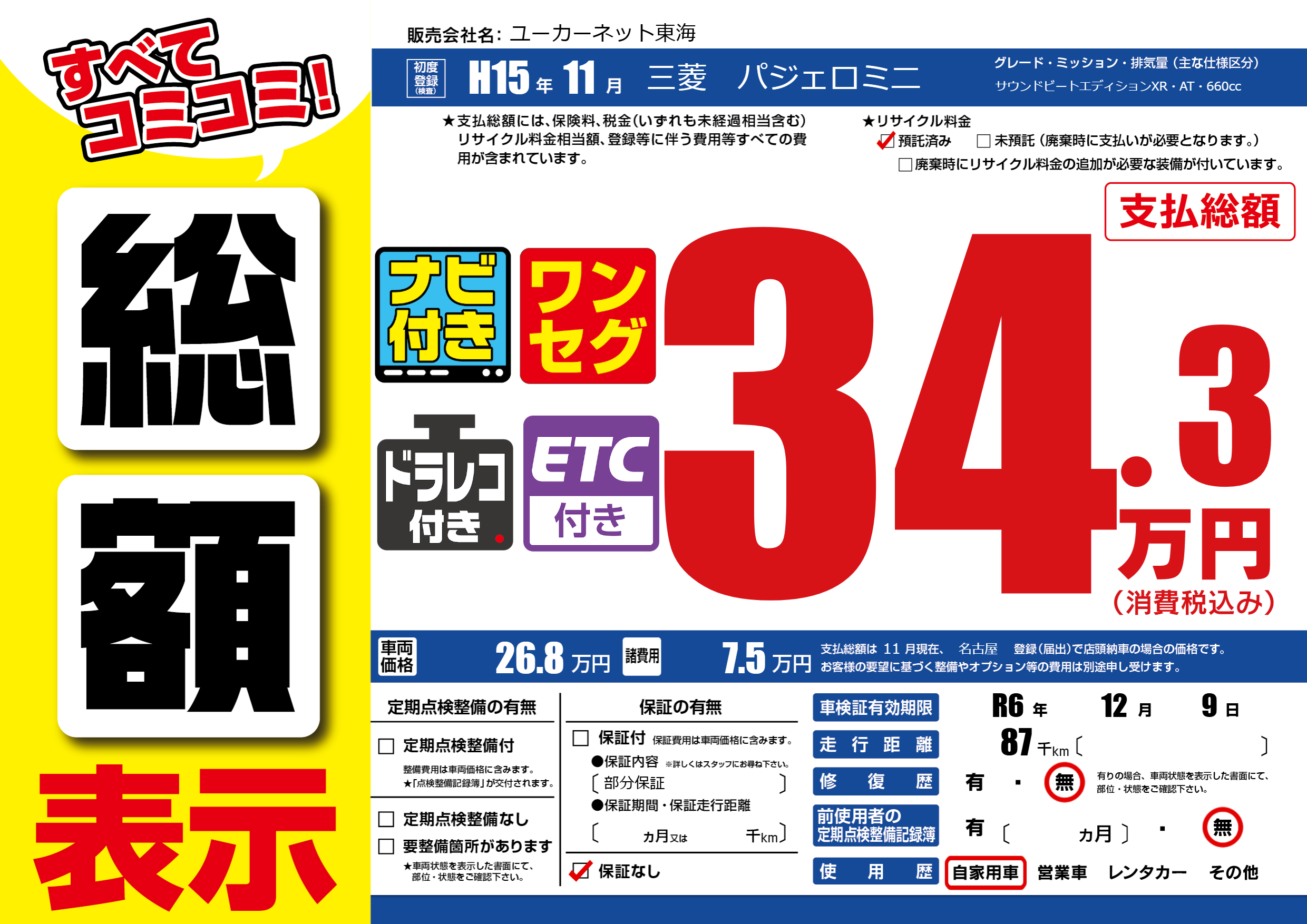 | 車検制限 | R6年 12月 9日 | ||