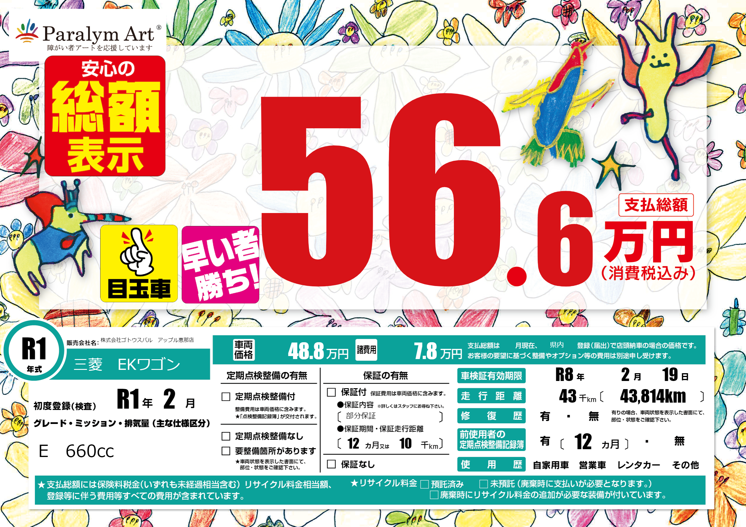 | 車名 | 三菱 EKワゴン | グレード ミッション 排気量 |