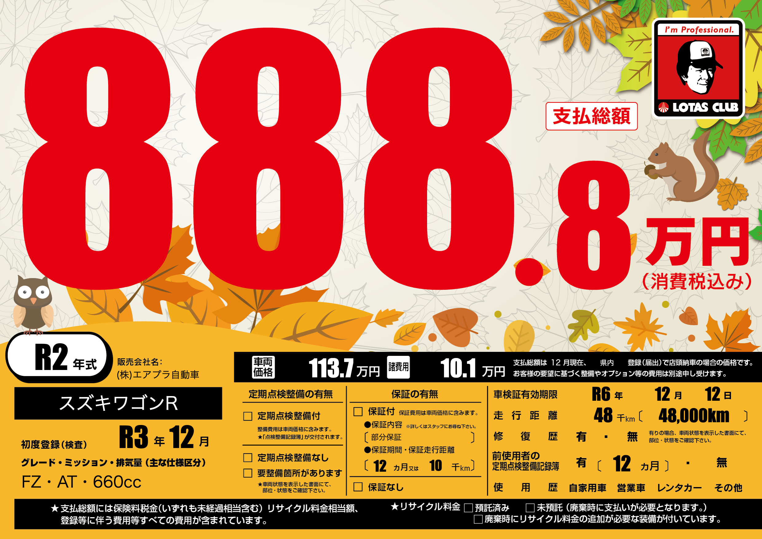 | 車名 | スズキワゴンR | グレード ミッション 排気量 |