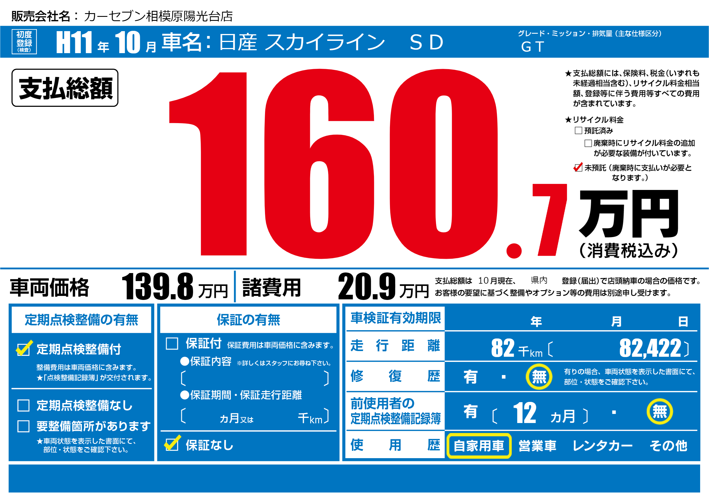 | 定期点検整備 | 定期点検整備あり | ||
