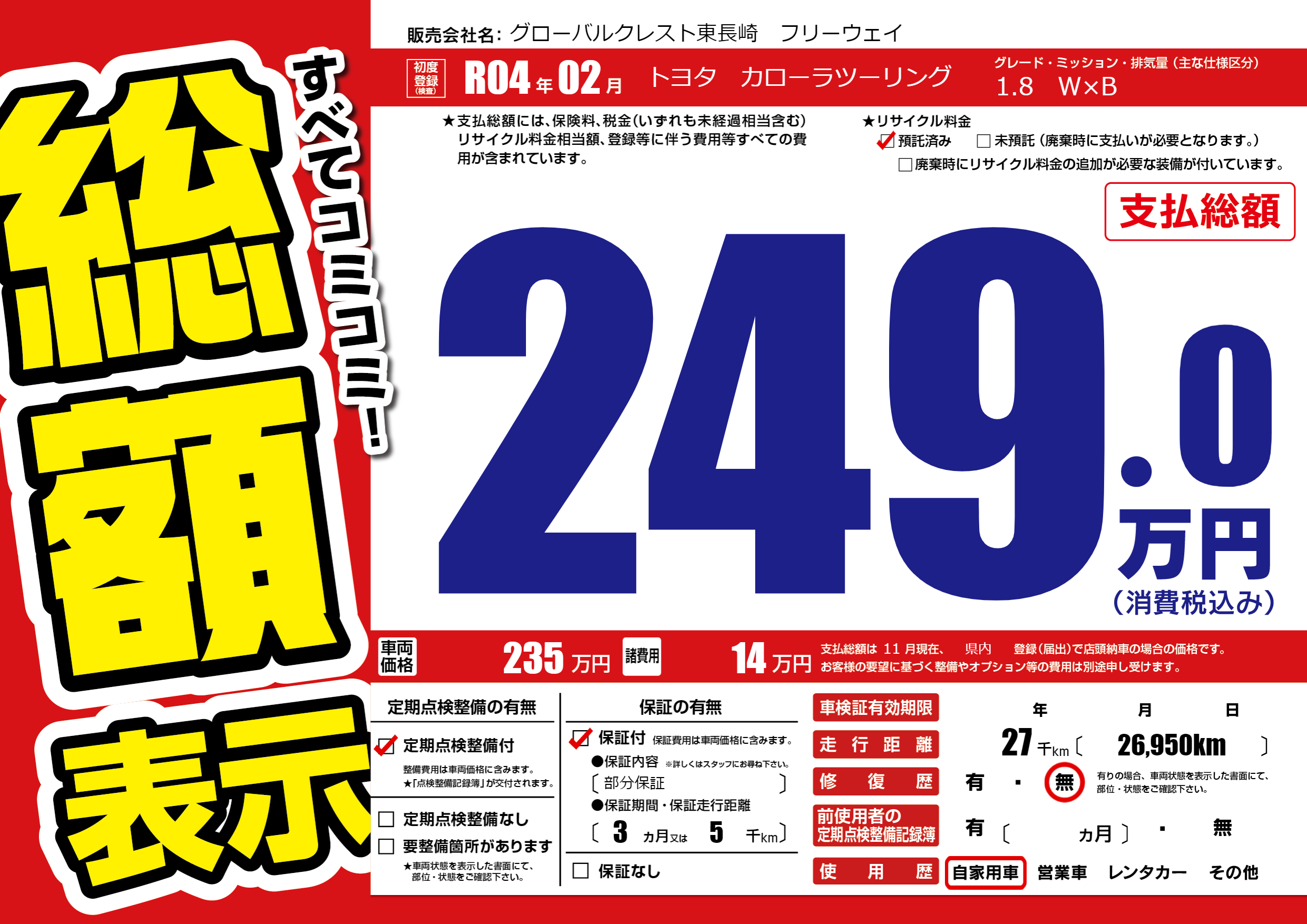 | 定期点検整備 | 定期点検整備あり | ||