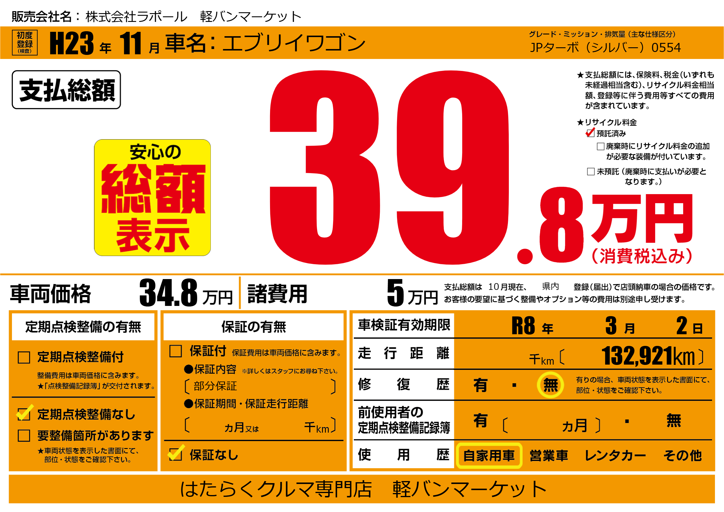 株式会社ラポール 軽バンマーケットの展示車