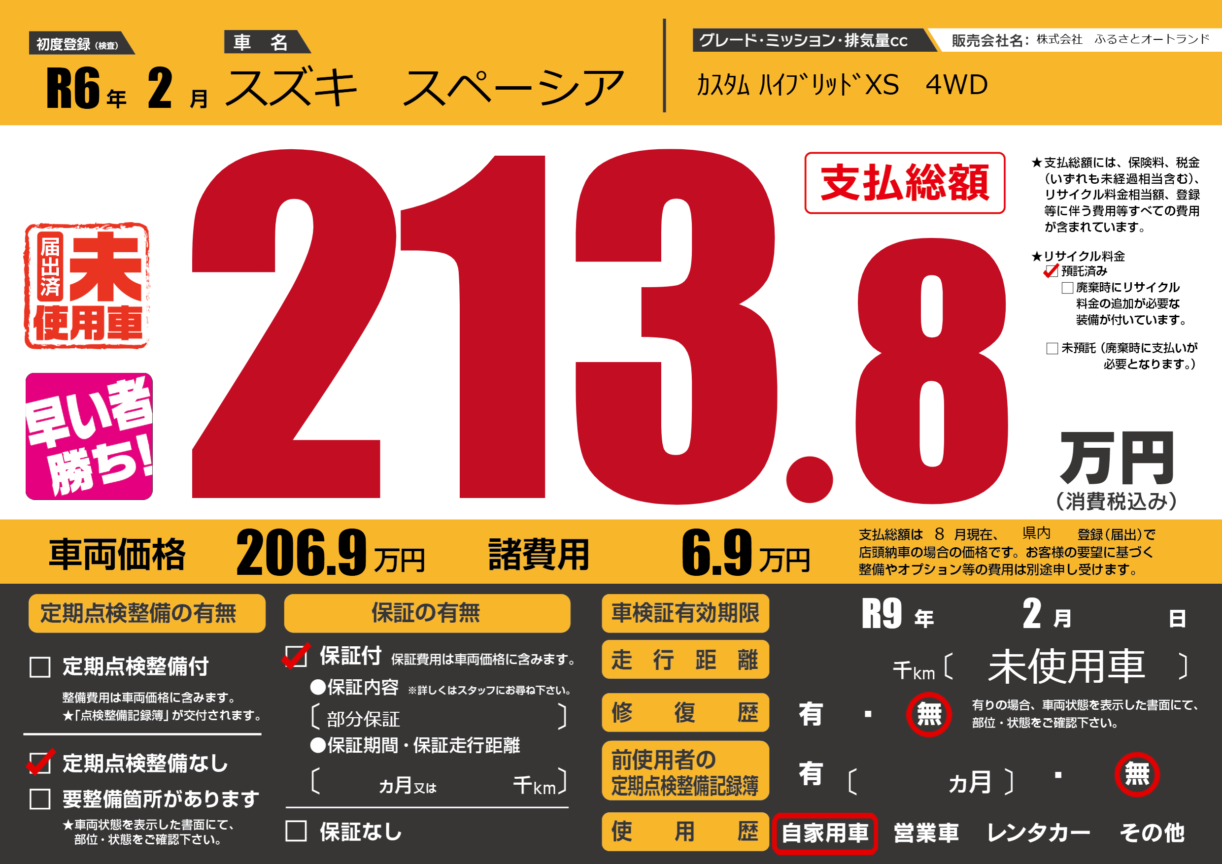 | 走行キロ | - | 初年度登録 | R6年2月 |