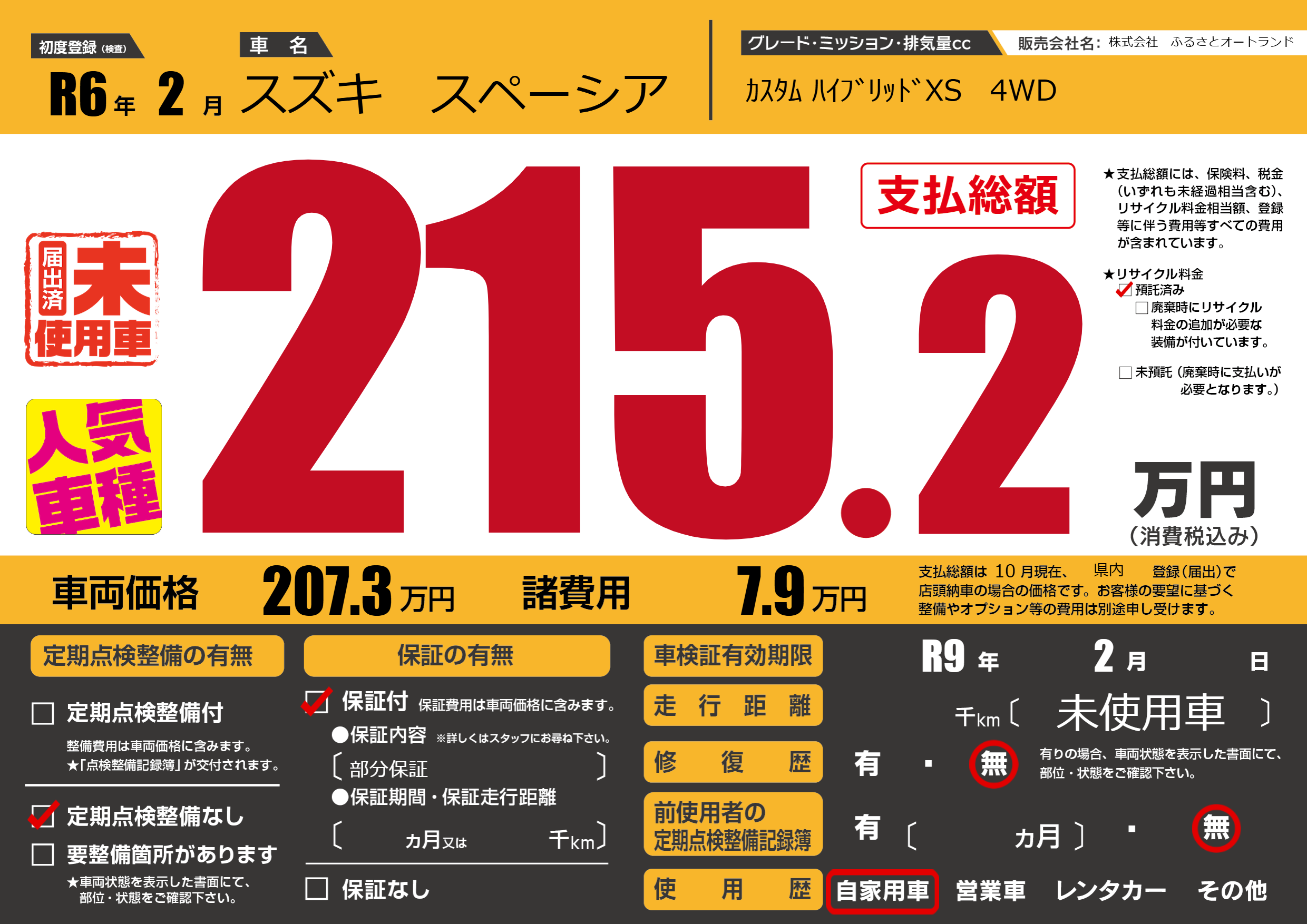 | 走行キロ | - | 初年度登録 | R6年2月 |