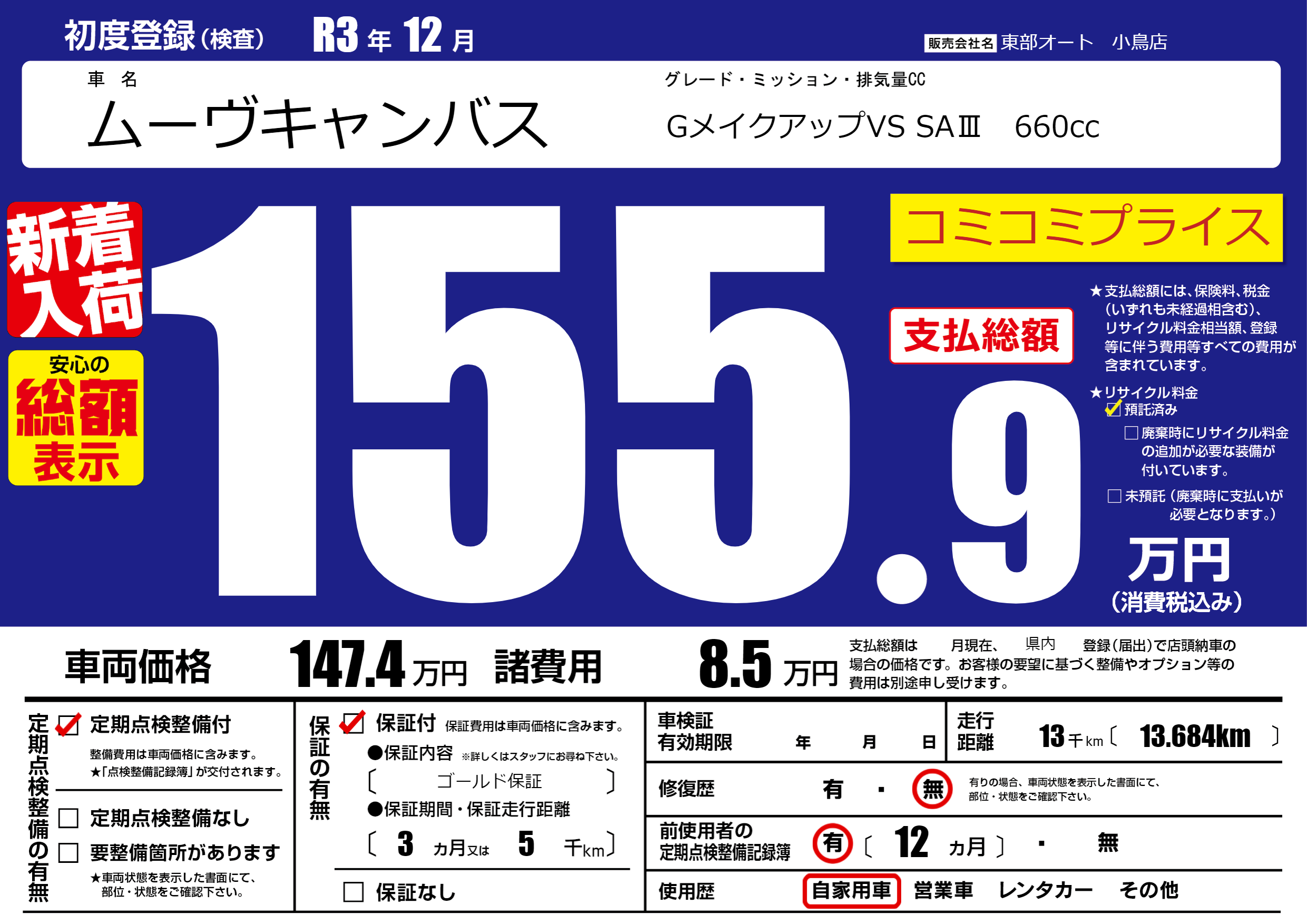 保証付き 保証内容( ゴールド保証) 3ヶ月または5千km |