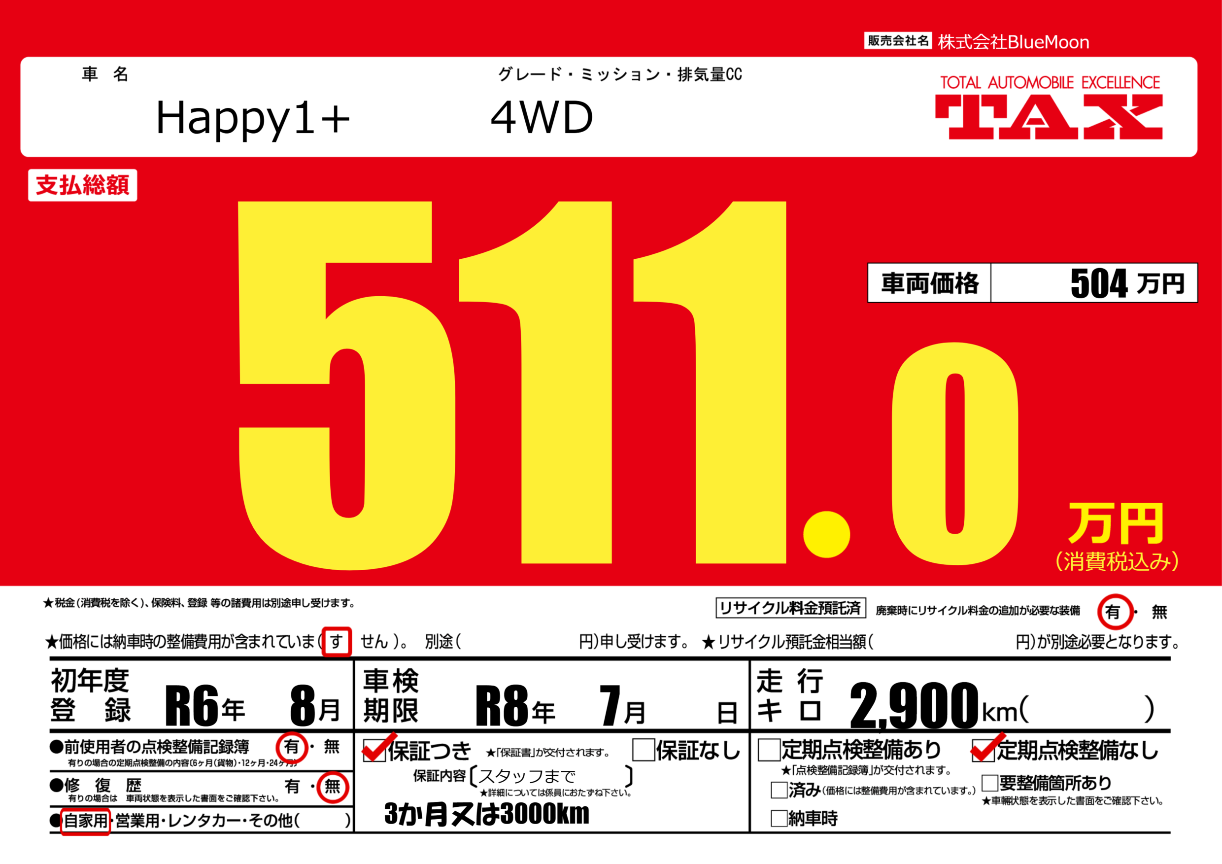 | 車名 | Happy1+ | グレード ミッション 排気量 |