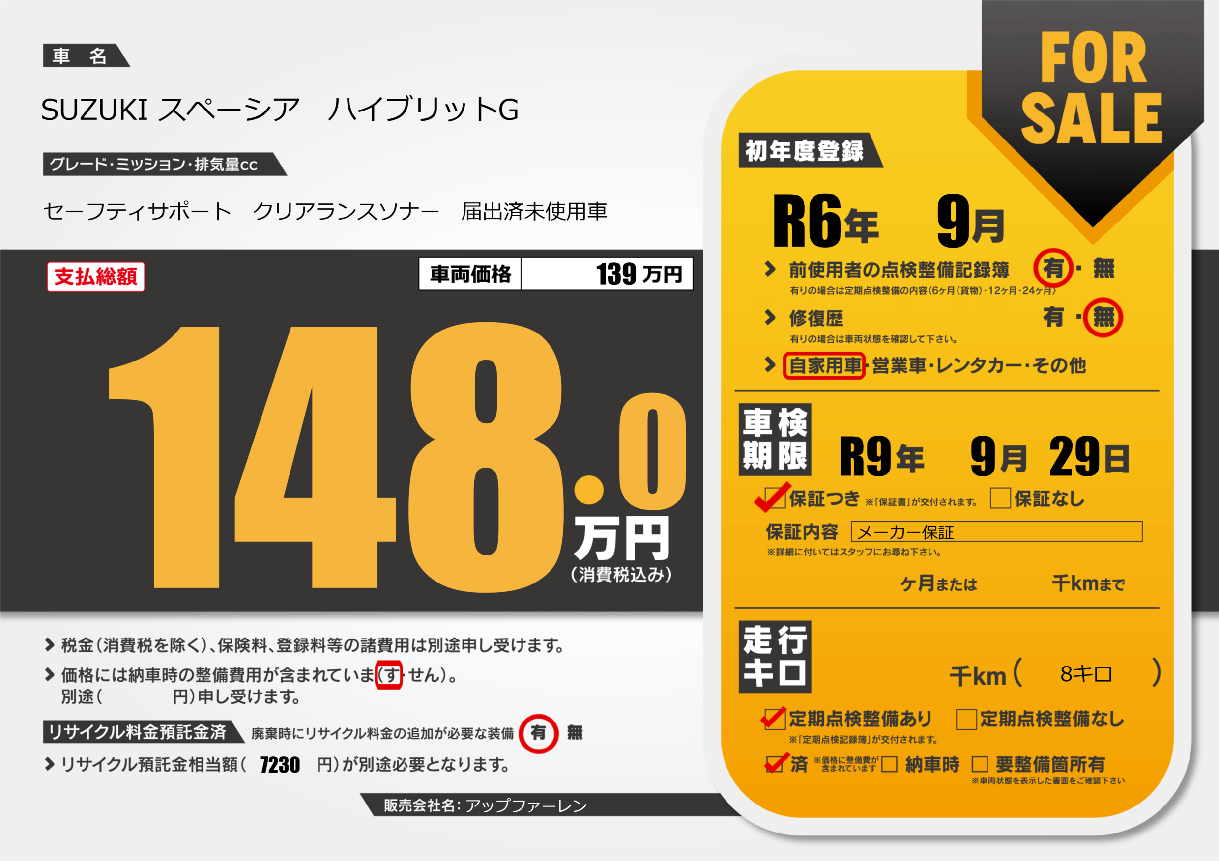 | 走行キロ | - | 初年度登録 | R6年9月 |