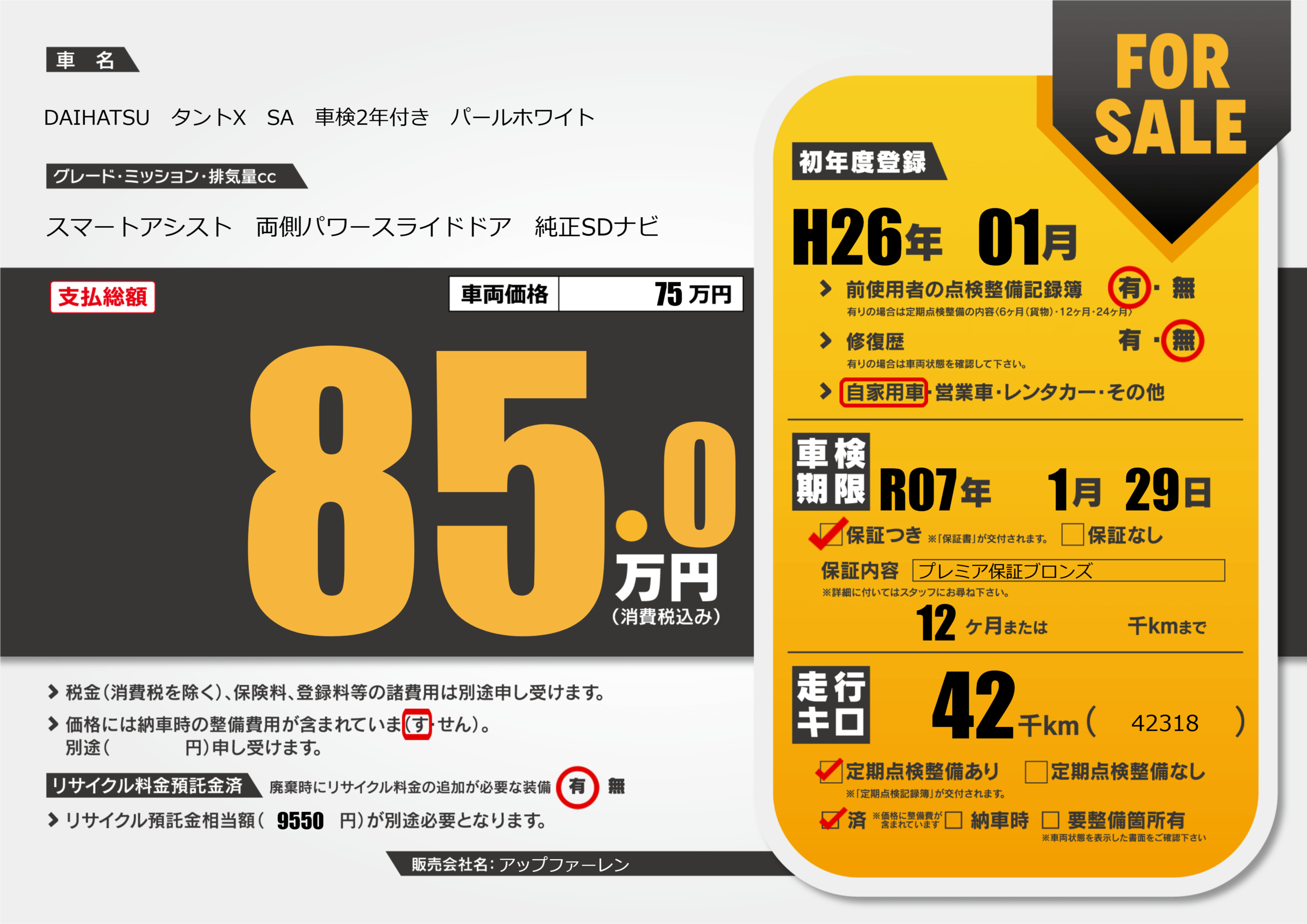 | 定期点検整備 | 定期点検整備あり 定期点検整備済み | ||
