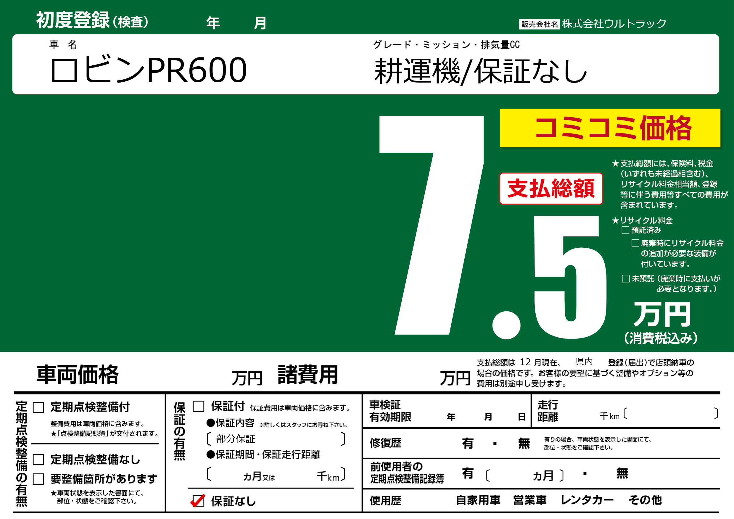 | 車名 | ロビンPR600 | グレード ミッション 排気量 |