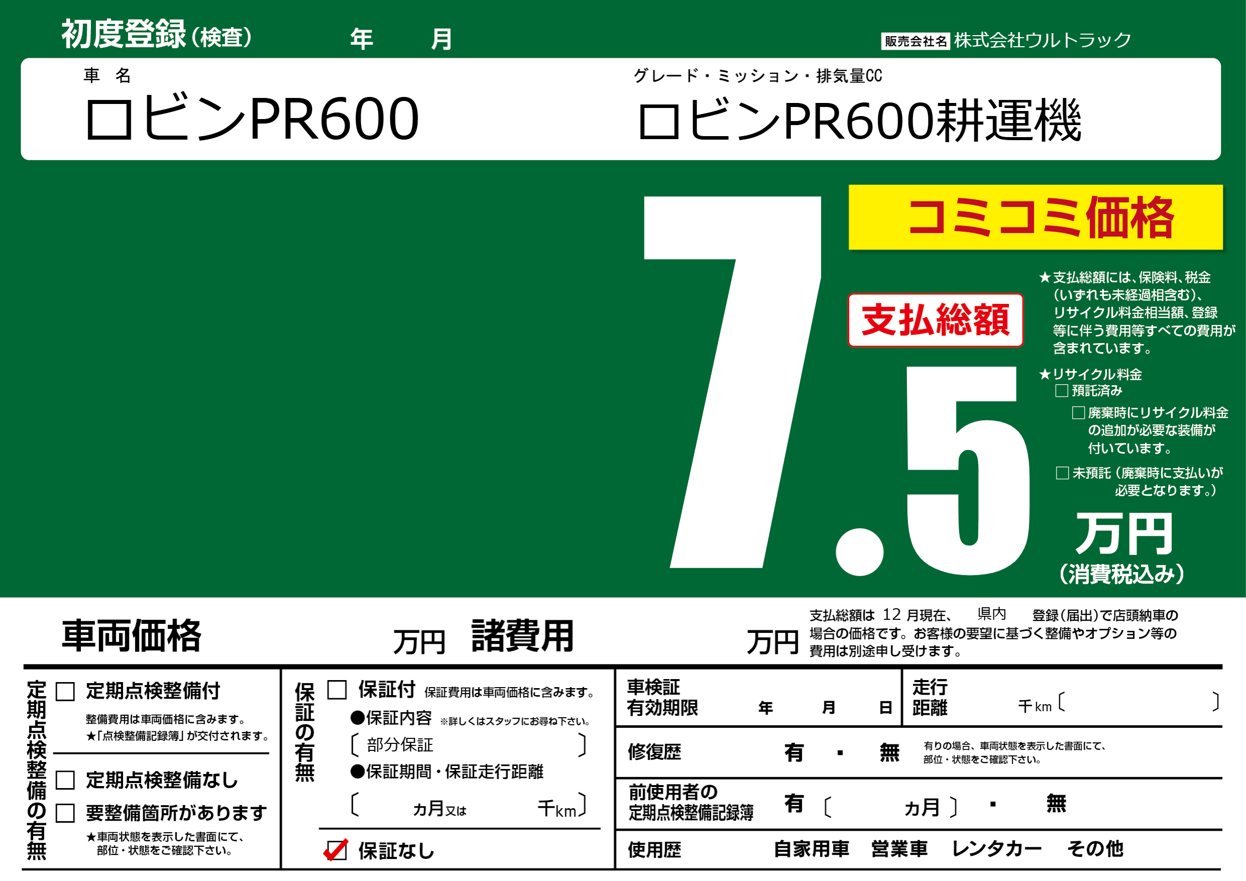 | 車名 | ロビンPR600 | グレード ミッション 排気量 |