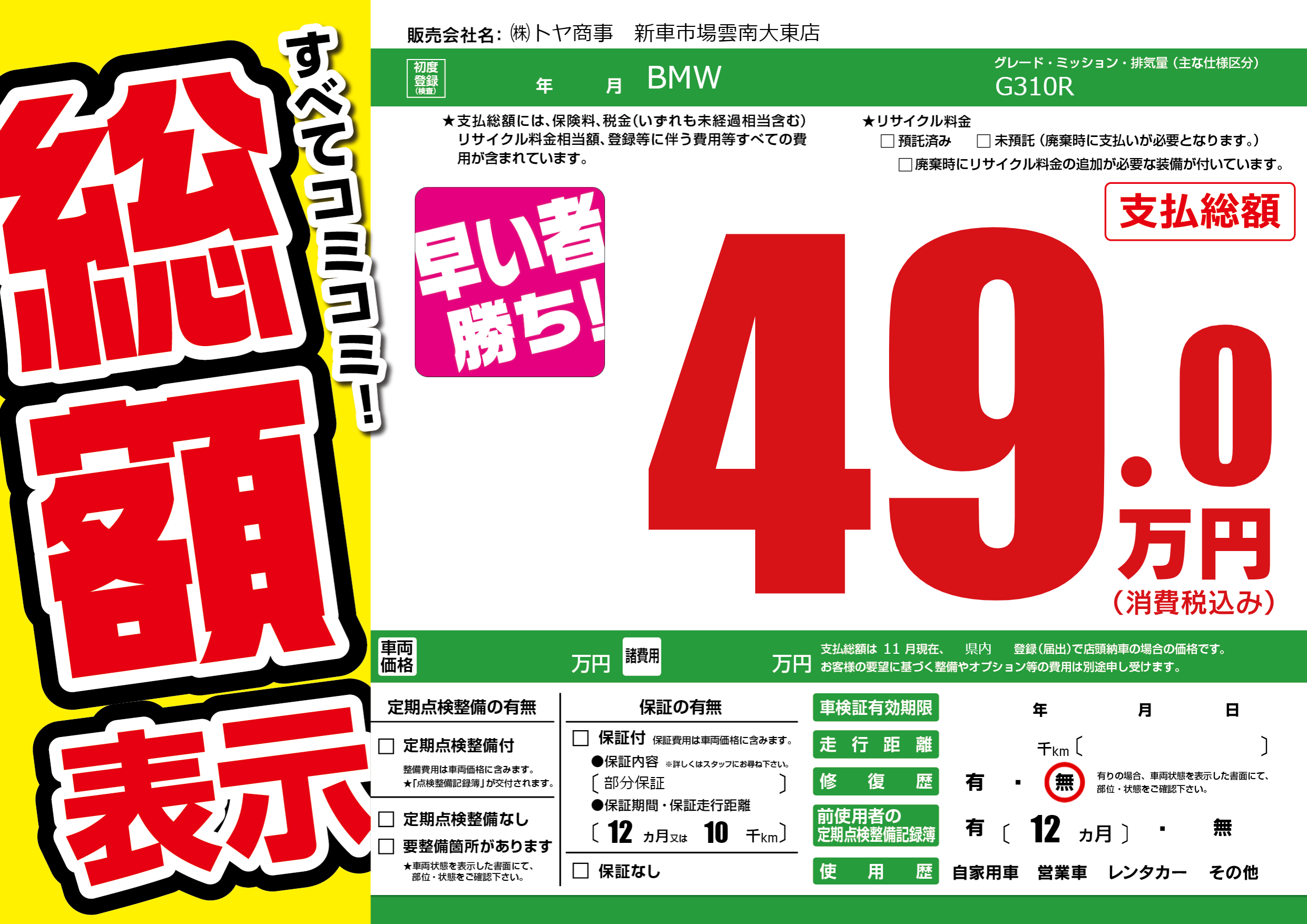 なし | リサイクル預託金相当額 | ( 0円)が別途必要 |