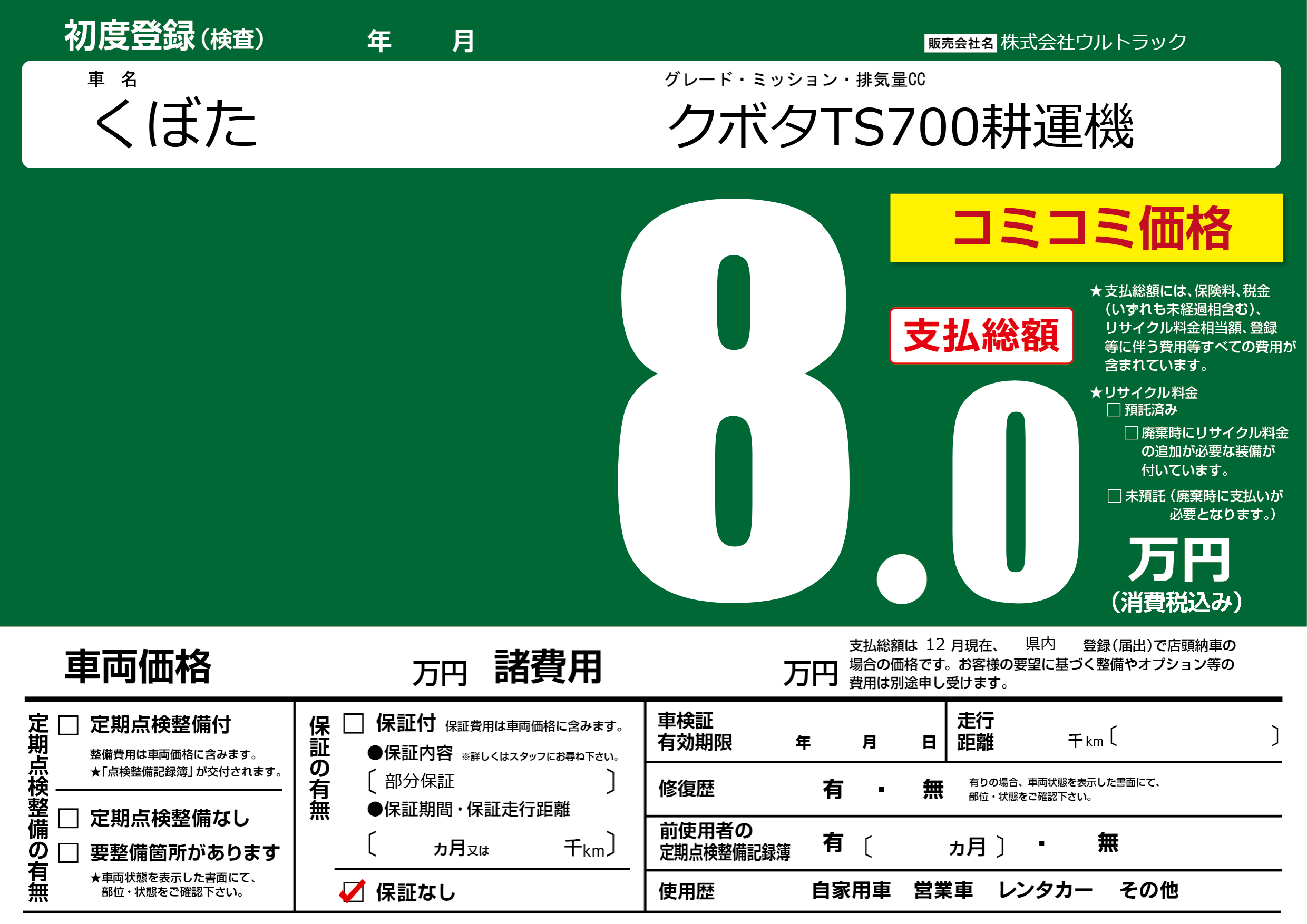 保証なし 保証内容(部分保証) ---ヶ月または()千kmまで |