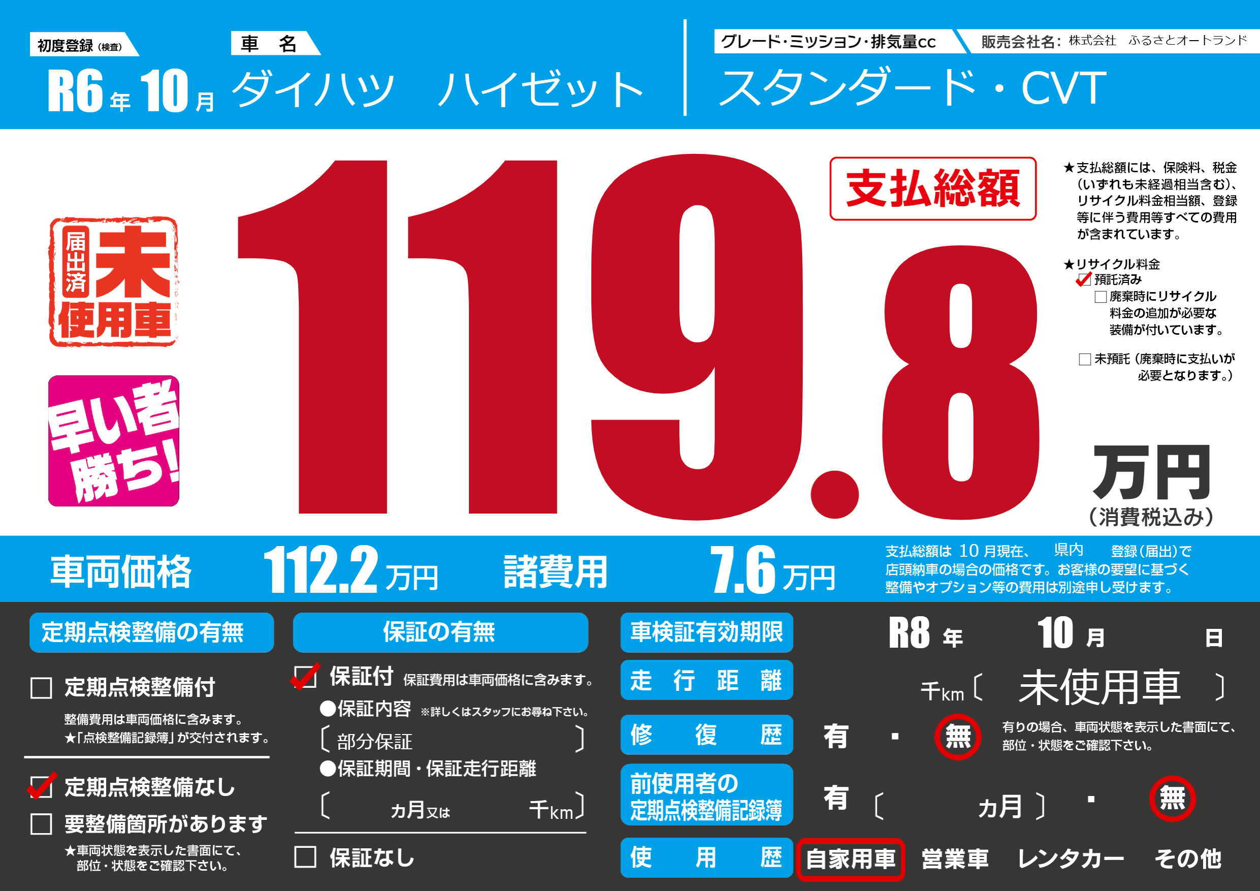 保証付き 保証内容(部分保証) ---ヶ月または()千kmまで |