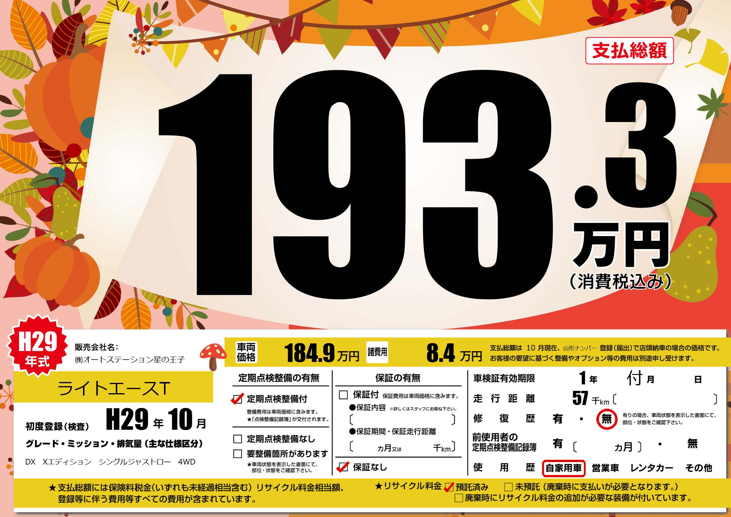 | 走行キロ | 5.7万km | 初年度登録 | H29年10月 |