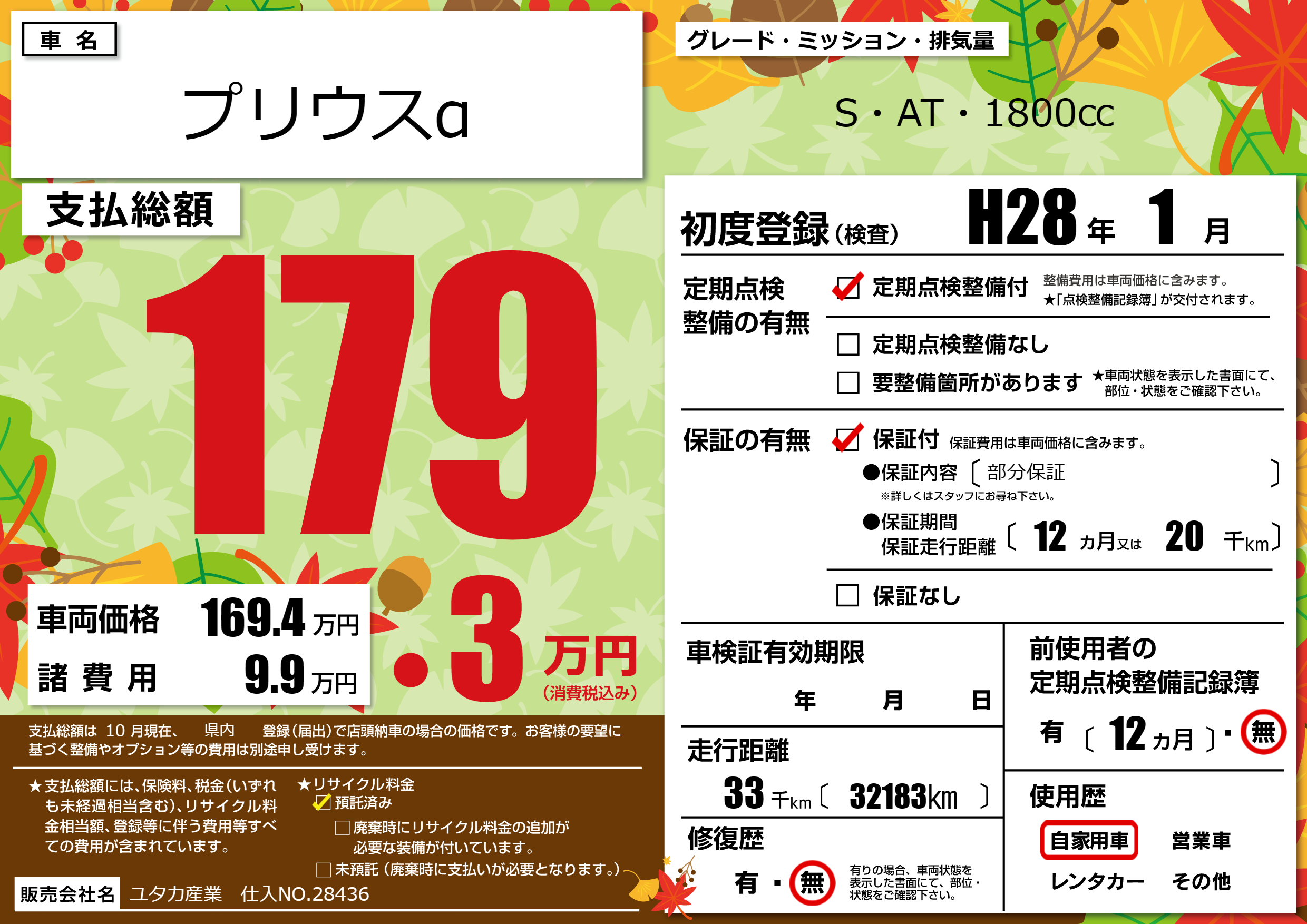| 車名 | プリウスα | グレード ミッション 排気量 |