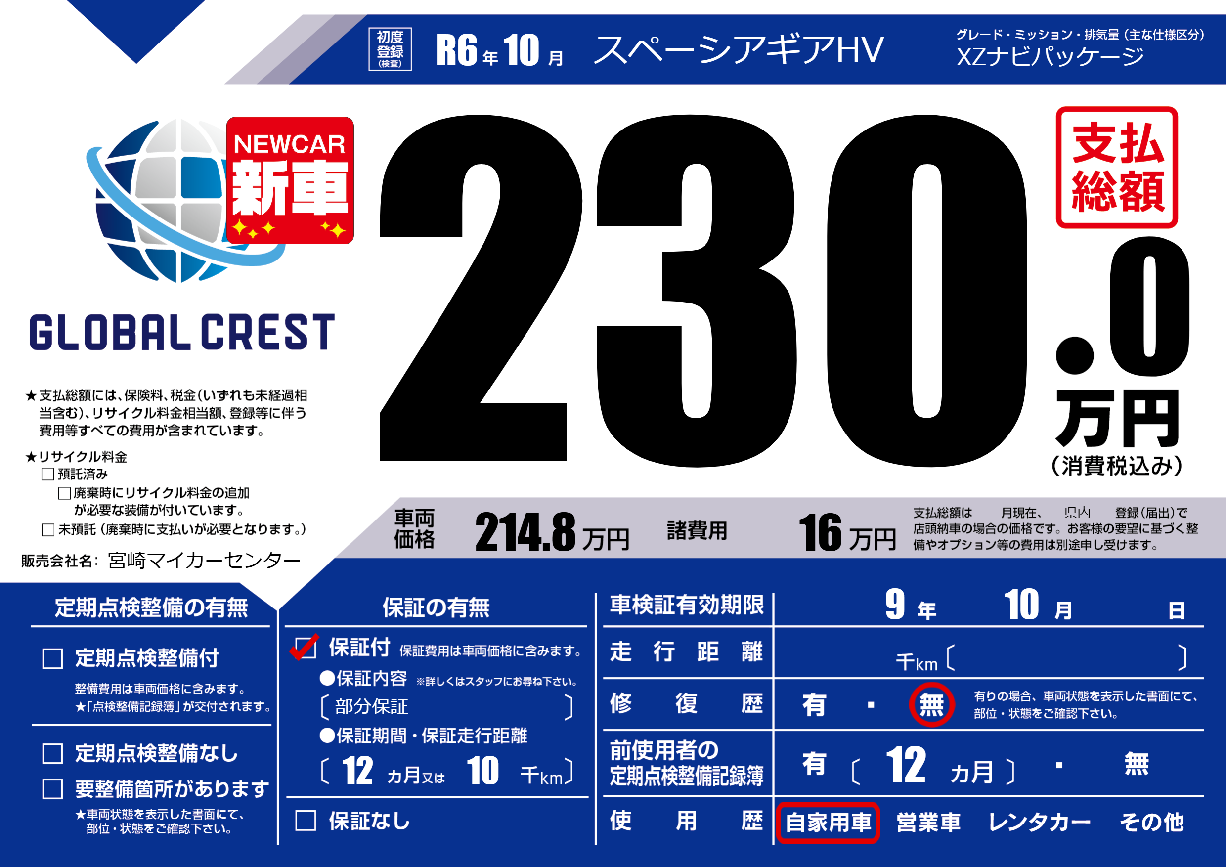 | 走行キロ | - | 初年度登録 | R6年10月 |