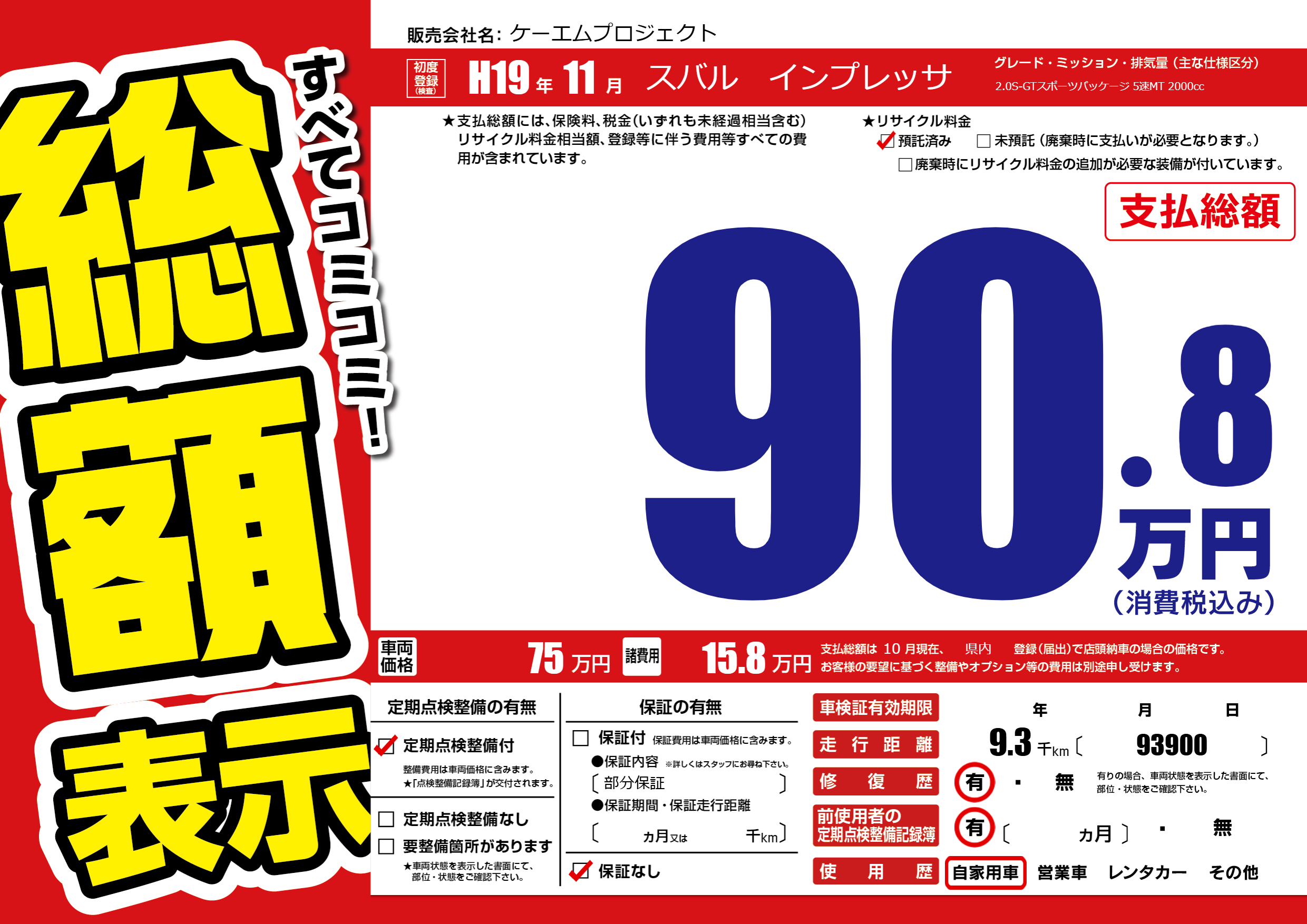 定期点検整備 | 定期点検整備あり |