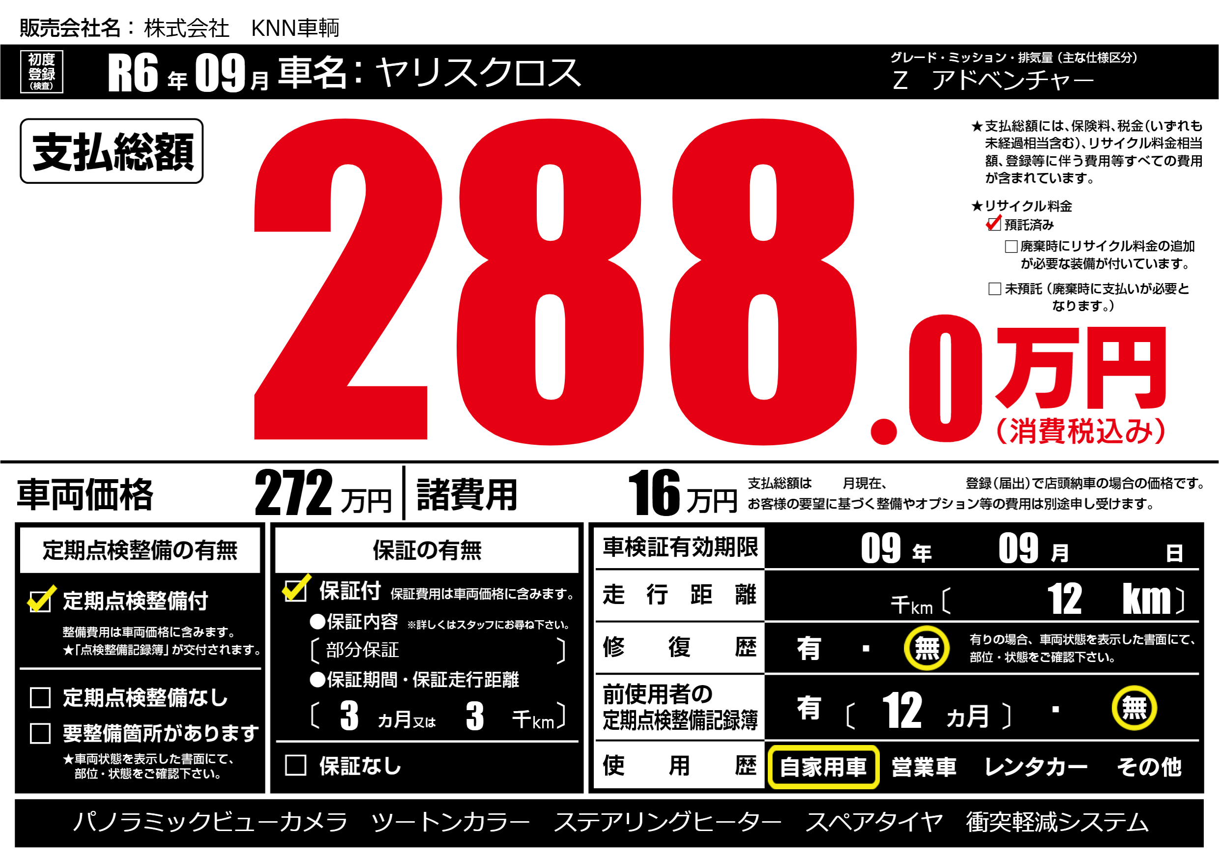| 走行キロ | - | 初年度登録 | R6年09月 |