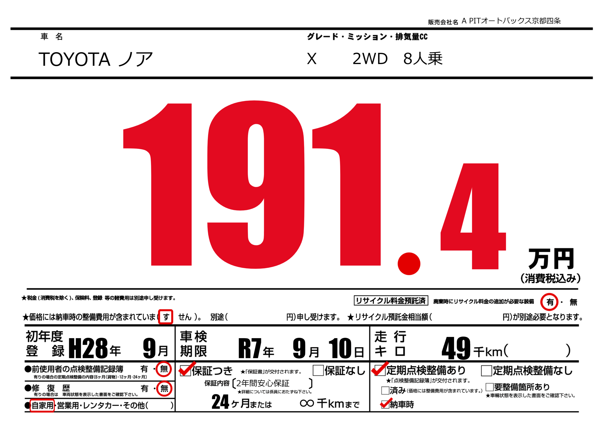 あり | 車検制限 | R7年9月10月 |