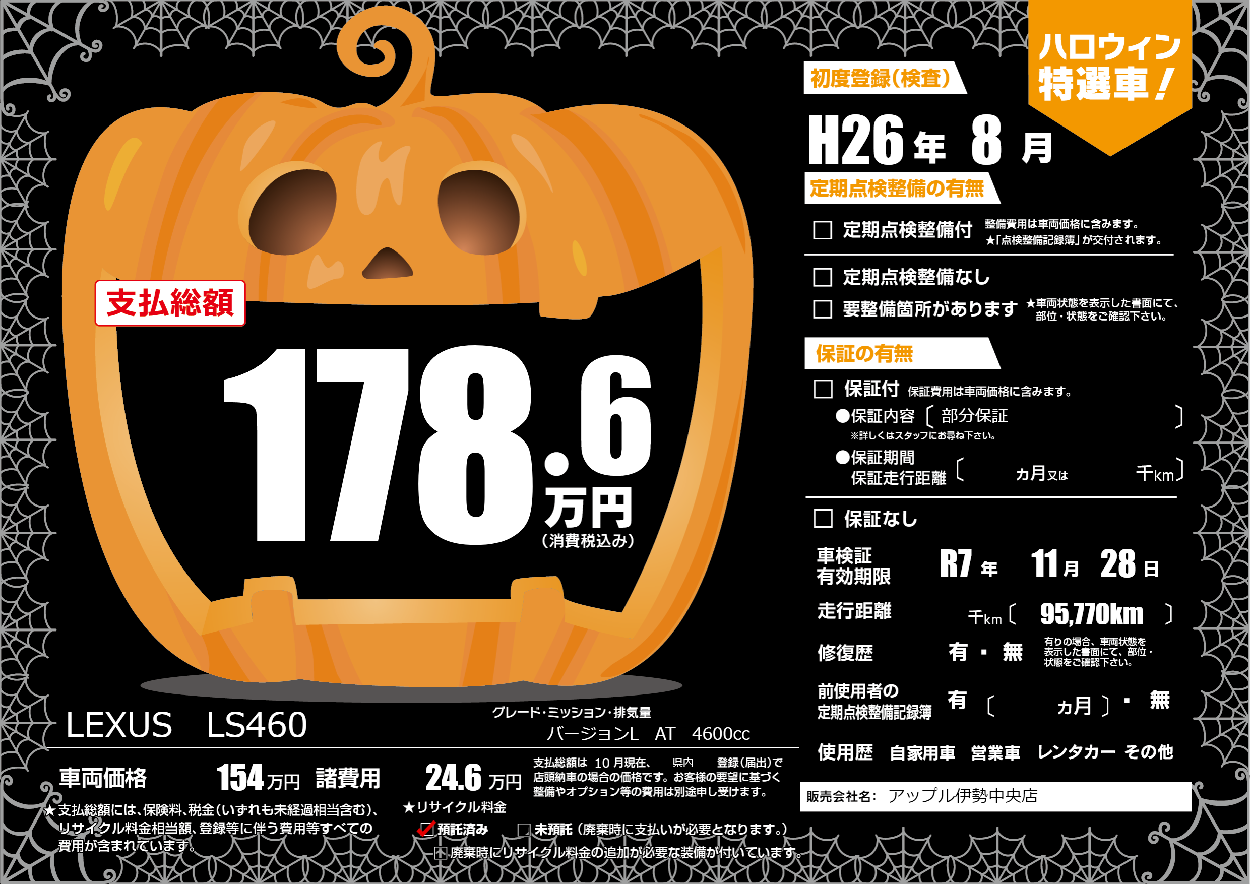 | 車名 | LEXUS LS460 | グレード ミッション 排気量 |