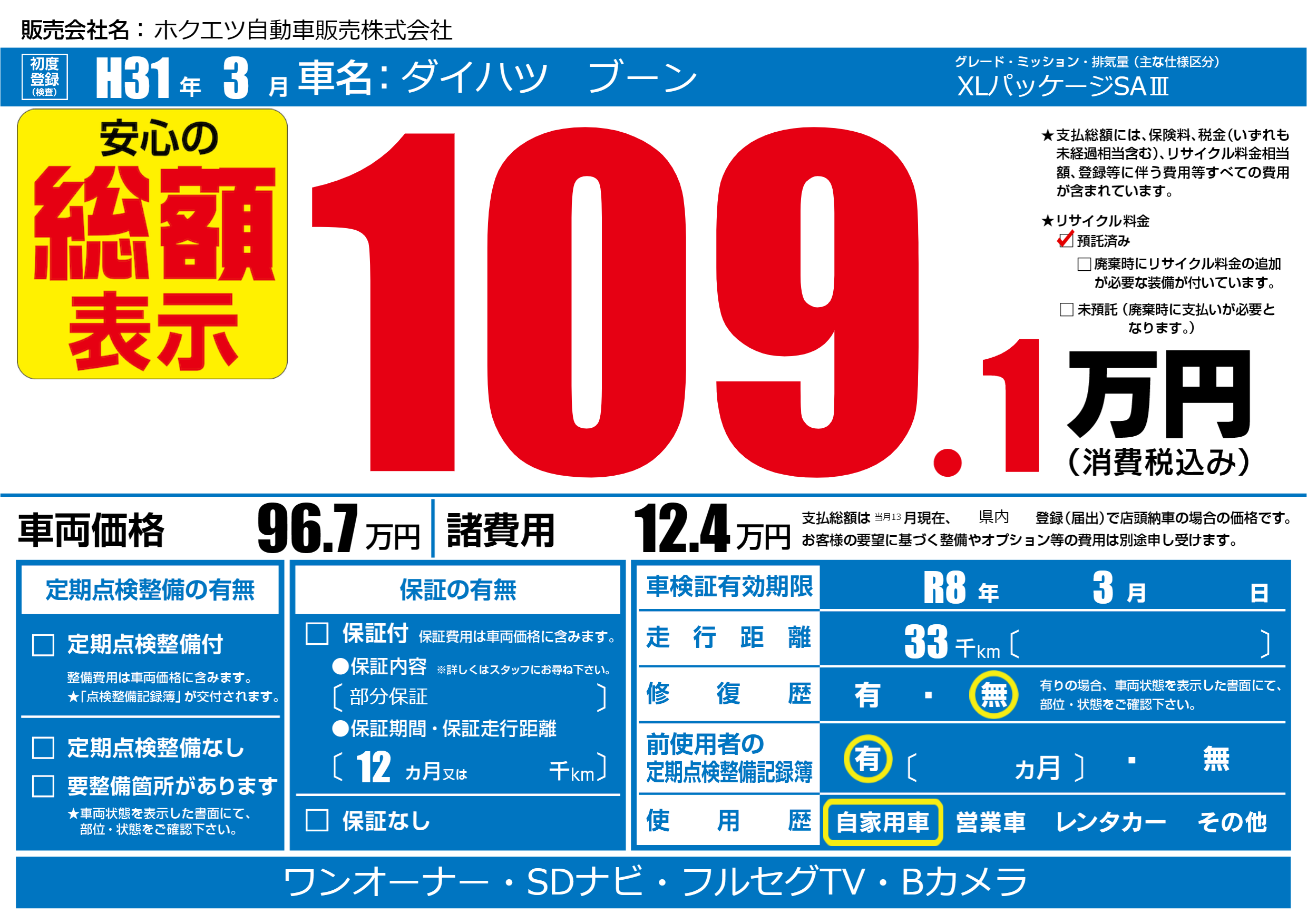 なし | 車検制限 | R8年3月---月 |