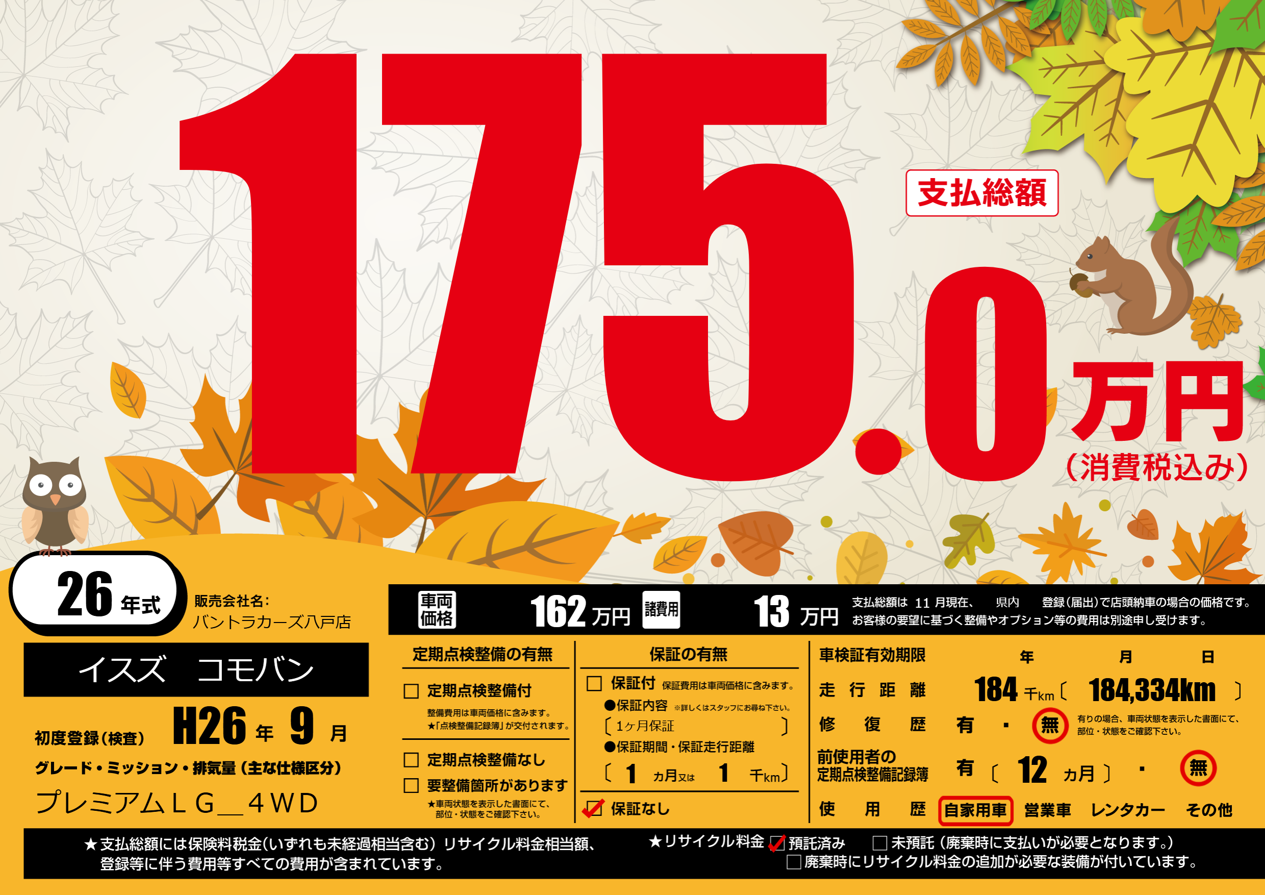 | 走行キロ | 18.4万km | 初年度登録 | H26年9月 |