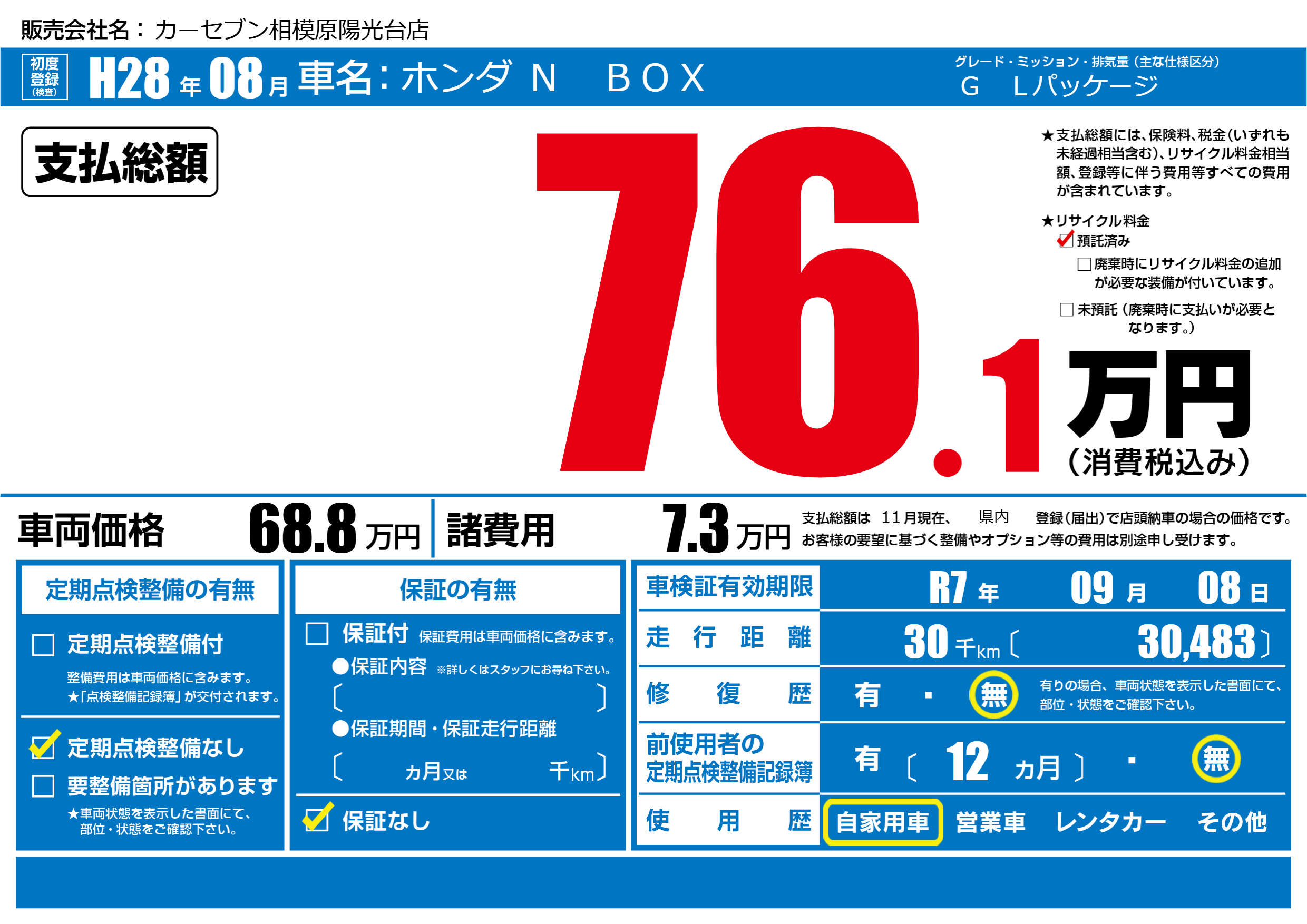 | 車検制限 | R7年 09月 08日 | ||
