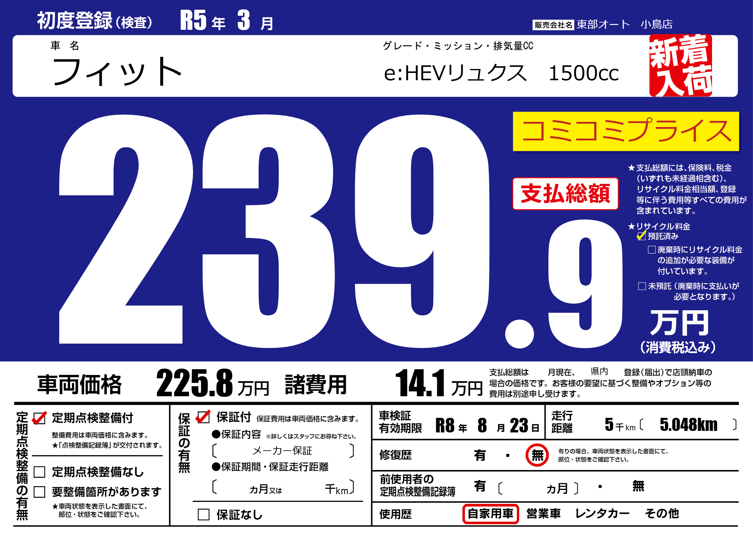 | 走行キロ | 0.5万km | 初年度登録 | R5年3月 |