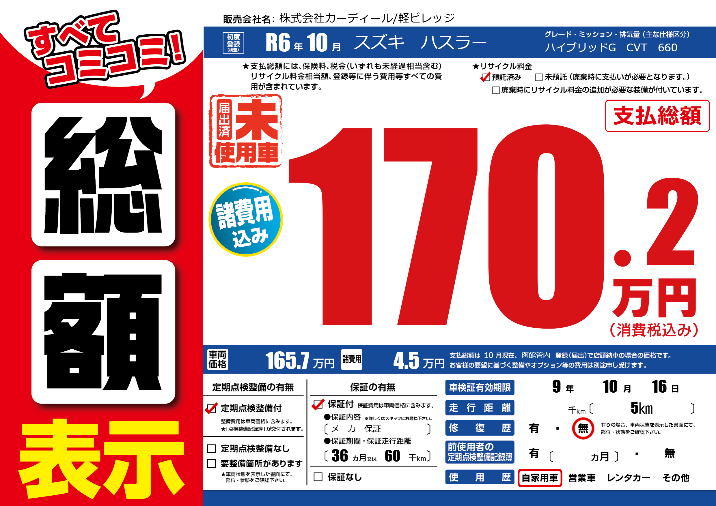 | 走行キロ | - | 初年度登録 | R6年10月 |