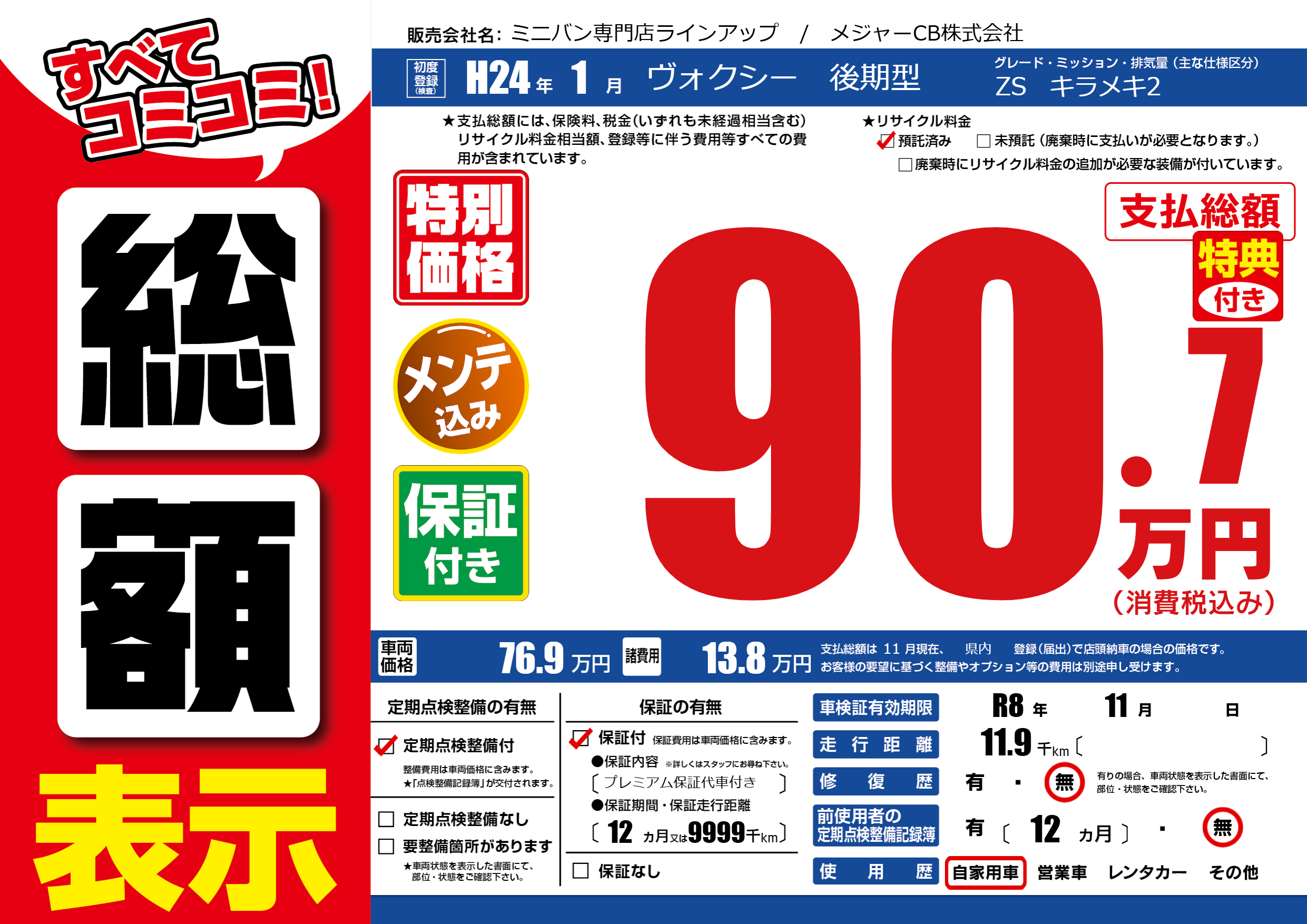 | 車名 | ヴォクシー 後期型 | グレード ミッション 排気量 |