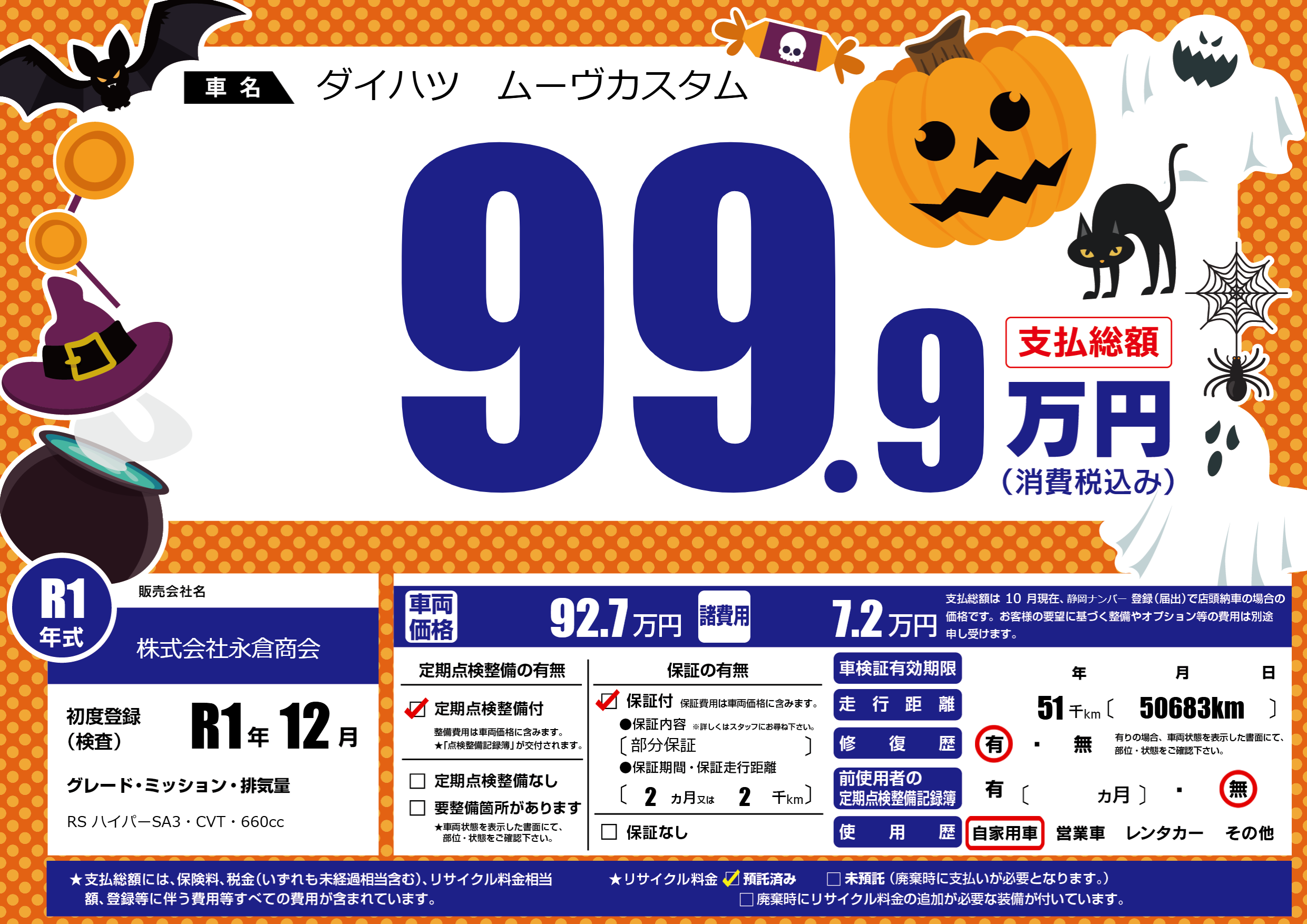 | 走行キロ | 5.1万km | 初年度登録 | R1年12月 |