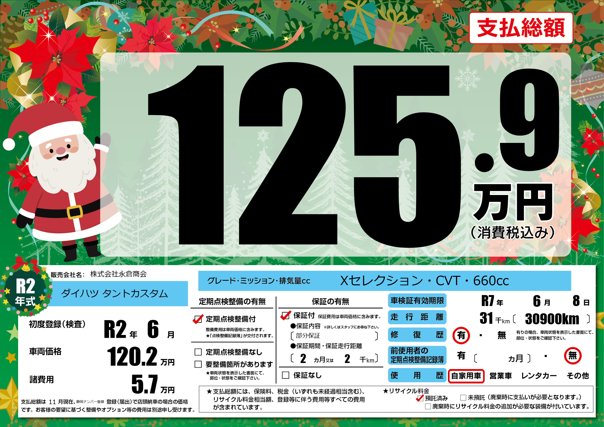 | 走行キロ | 3.1万km | 初年度登録 | R2年6月 |