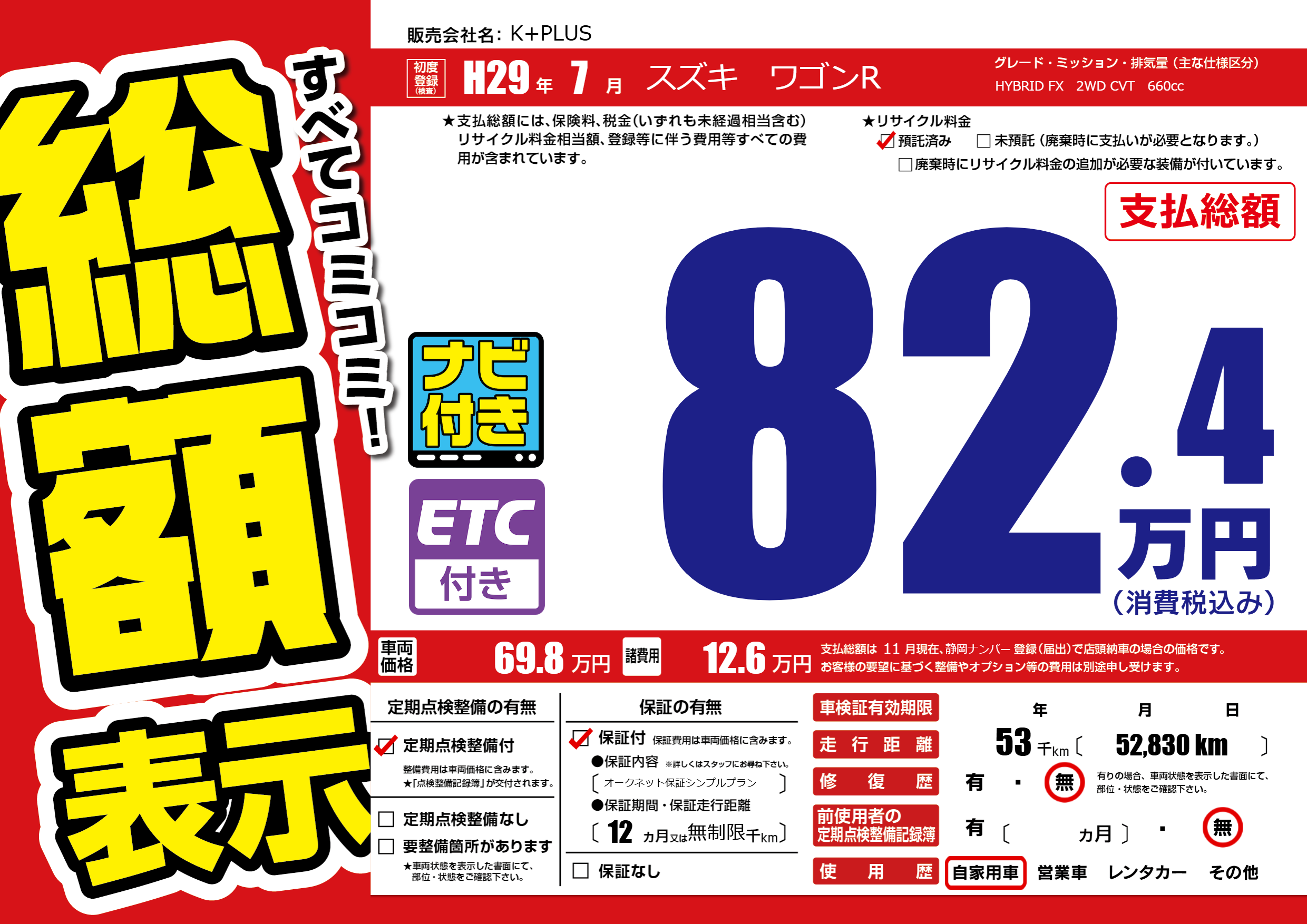| 車名 | スズキ ワゴンR | グレード ミッション 排気量 |