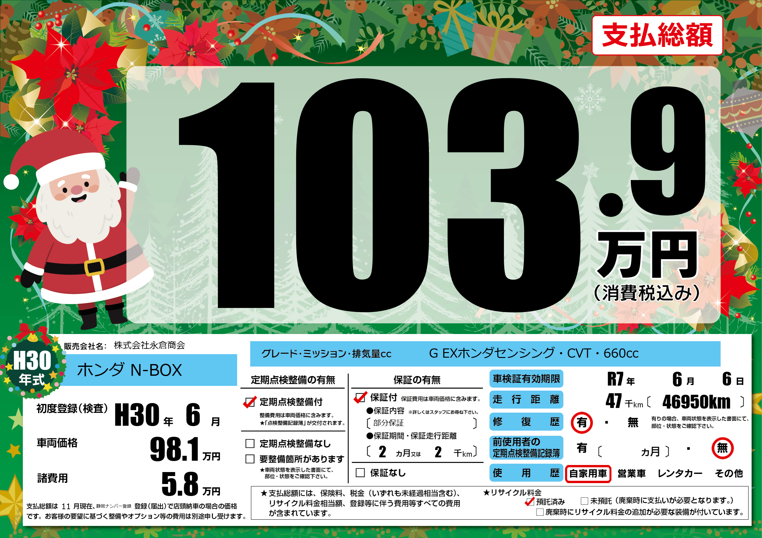 | 車検制限 | R7年 6月 6日 | ||