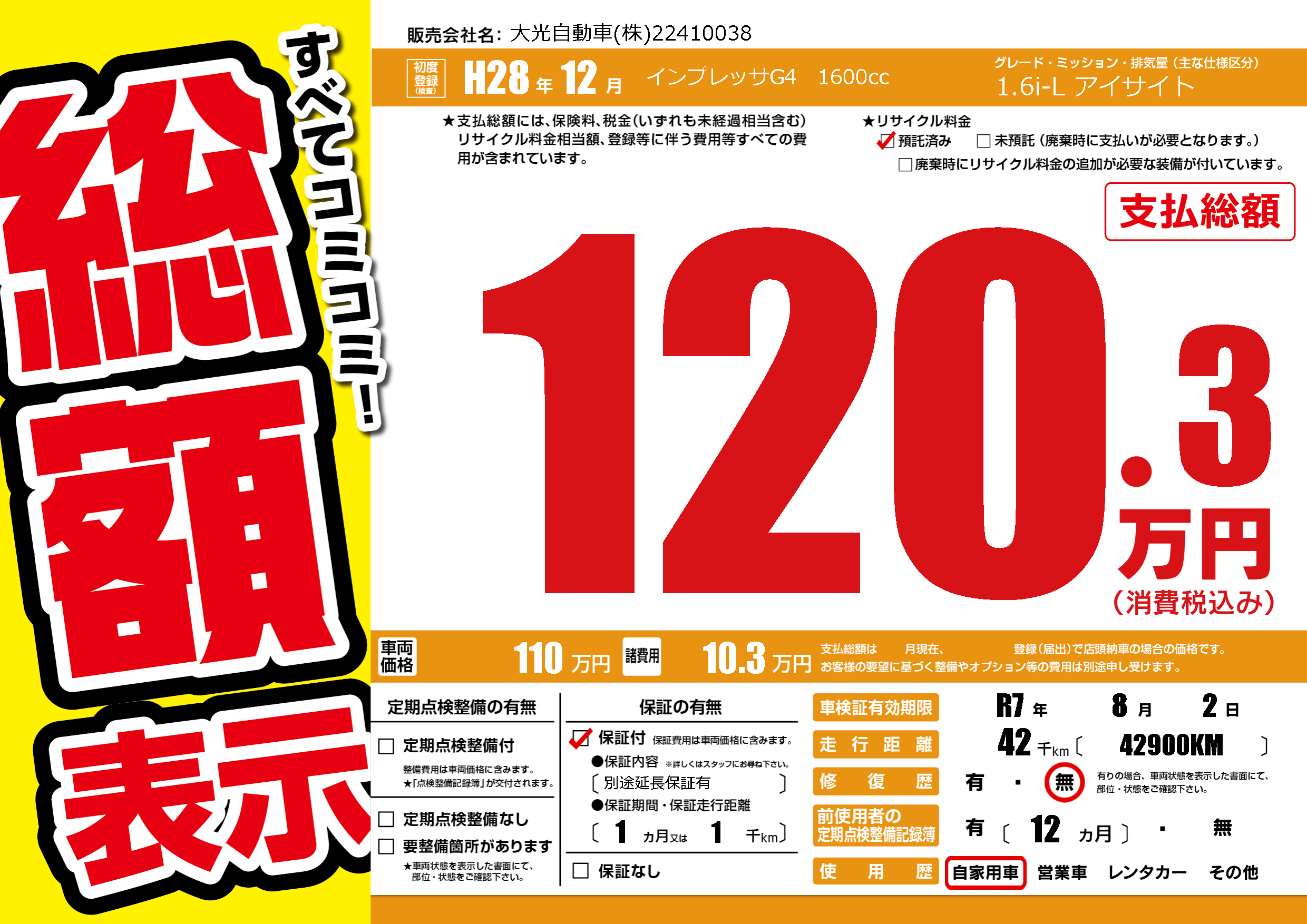 | 車検制限 | R7年 8月 2日 | ||
