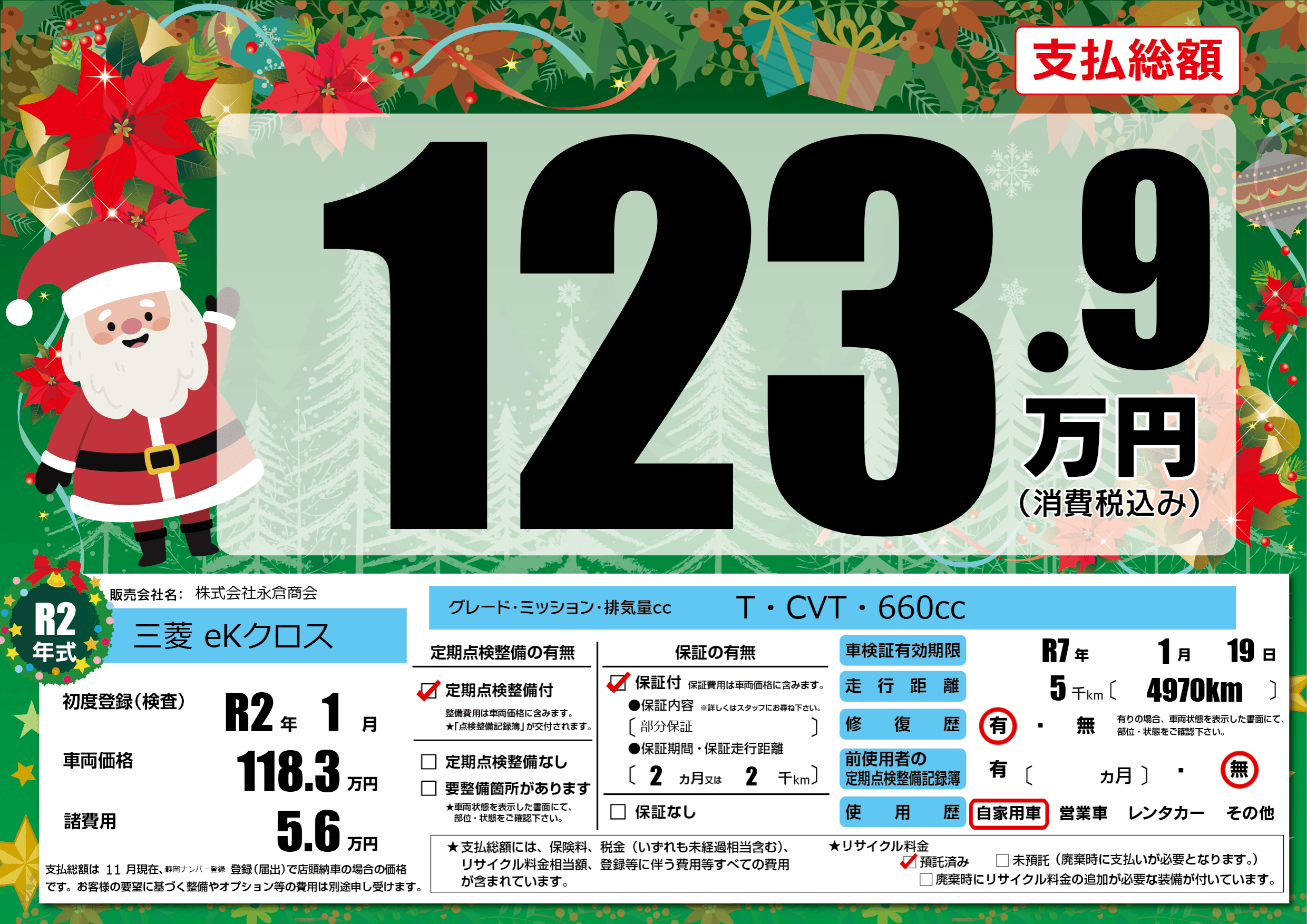 | 走行キロ | 0.5万km | 初年度登録 | R2年1月 |