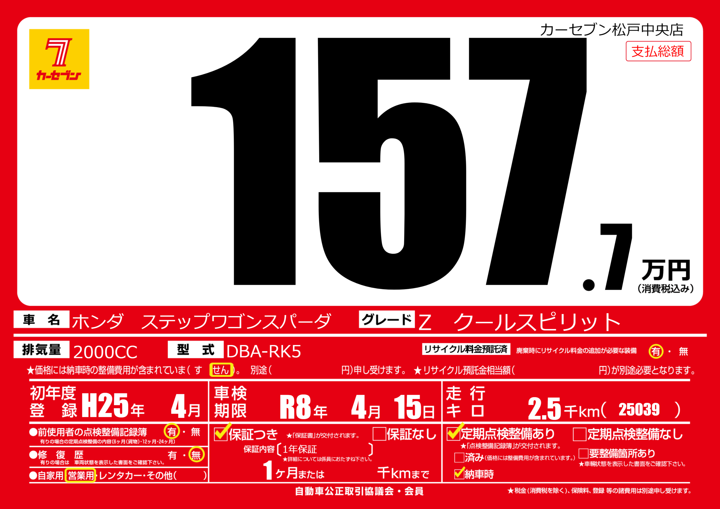 なし | 車検制限 | R8年4月15月 |