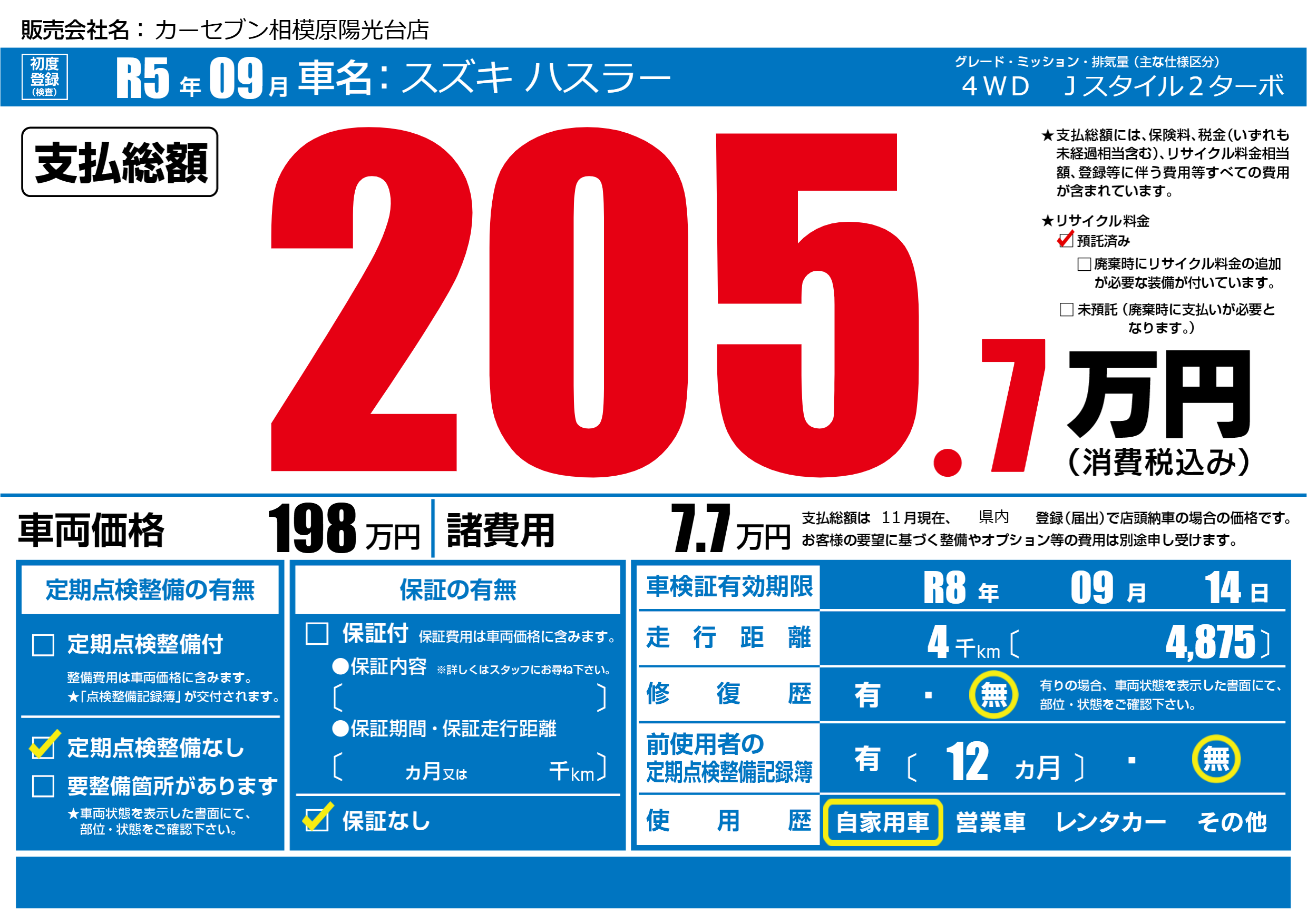 なし | 車検制限 | R8年09月14月 |