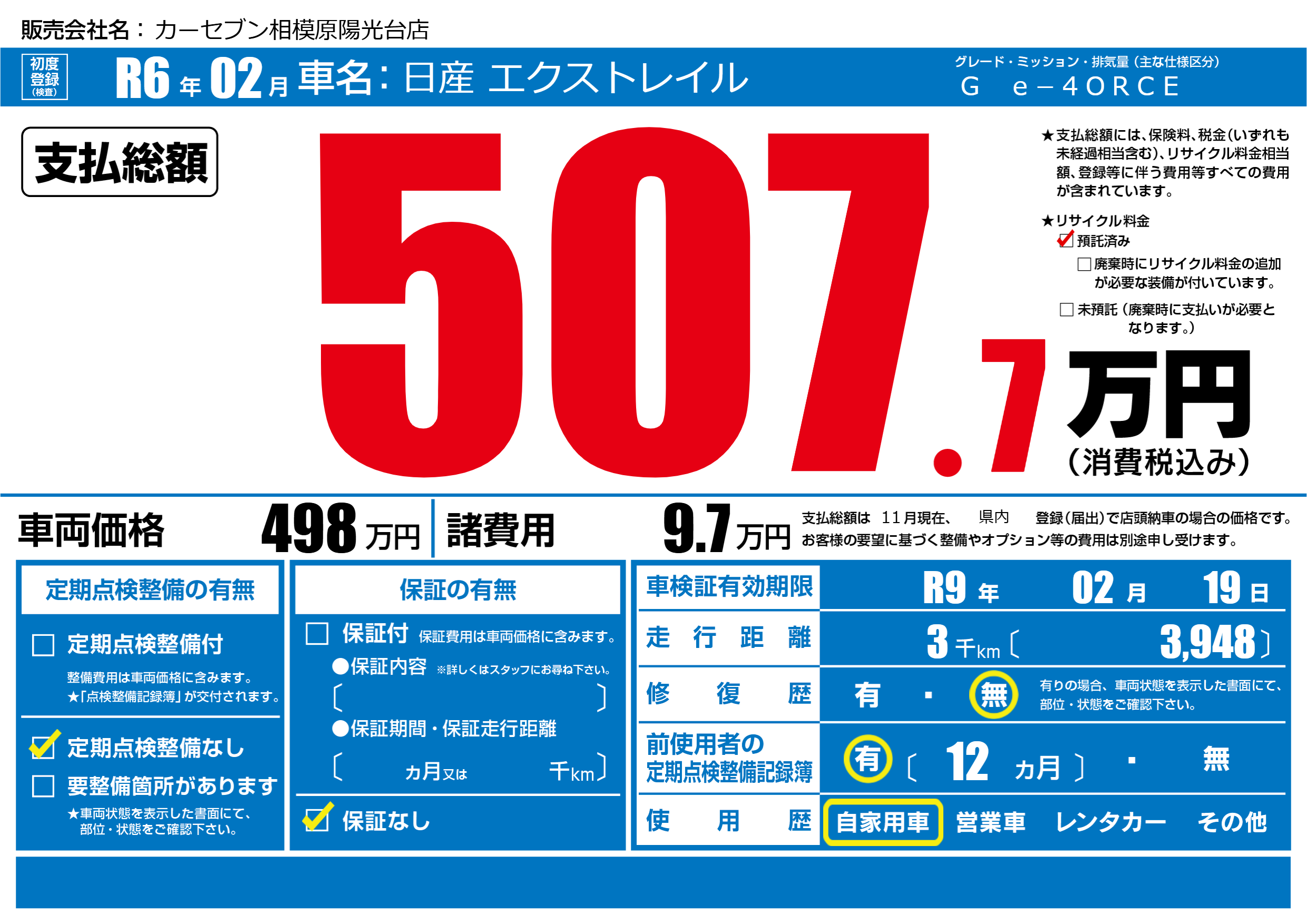 | 定期点検整備 | 定期点検整備なし | ||
