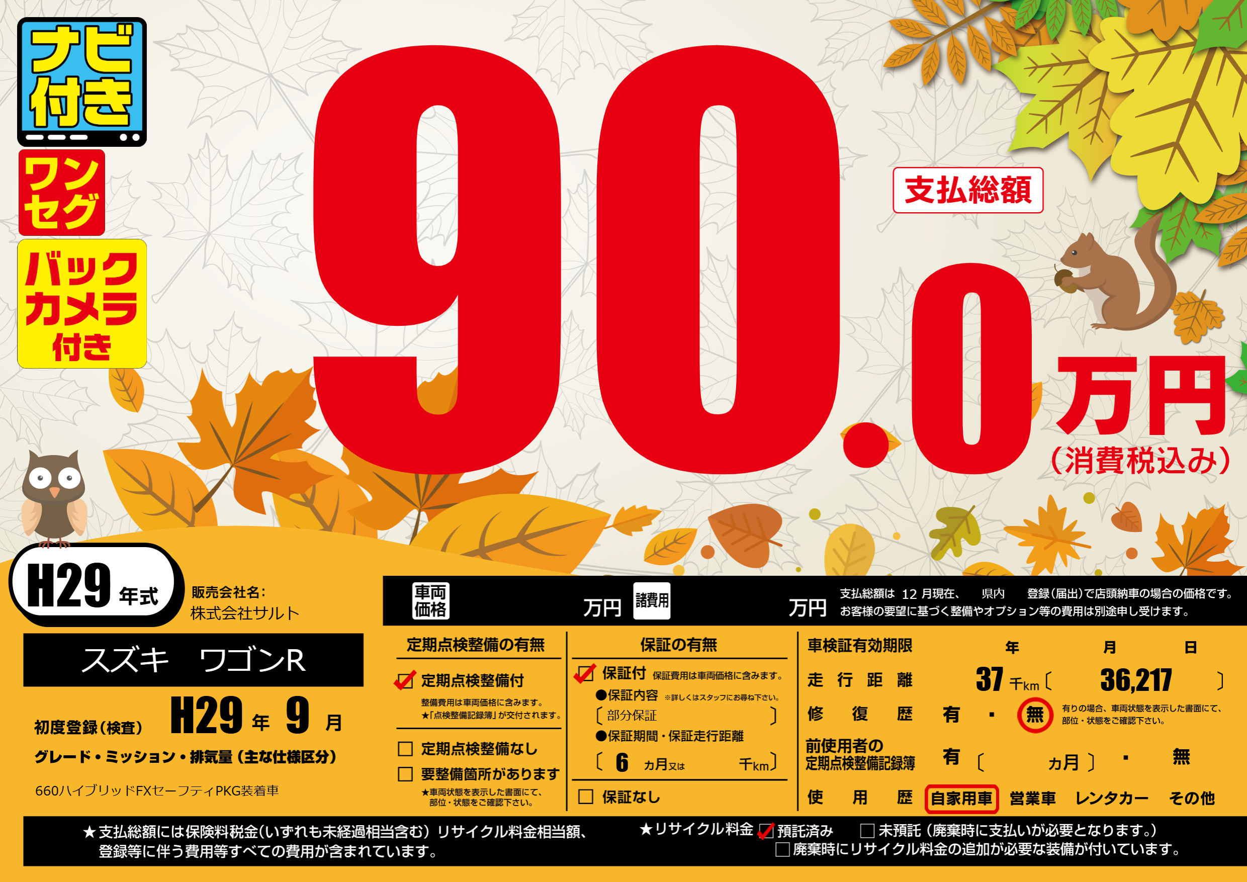 | 走行キロ | 3.7万km | 初年度登録 | H29年9月 |